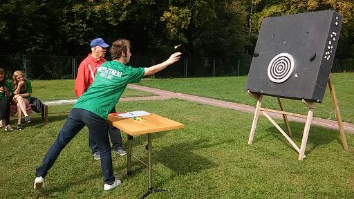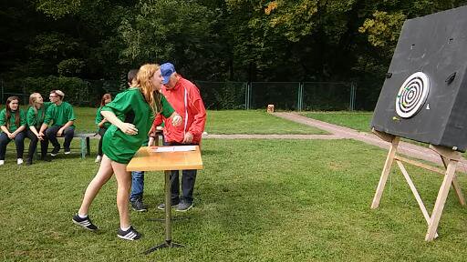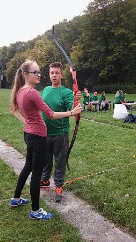 Podczas spotkania uczniowie wzięli udział w rozgrywkach sportowych takich jak strzał z łuku, rzut lotką do tarczy oraz strzał do bramki.