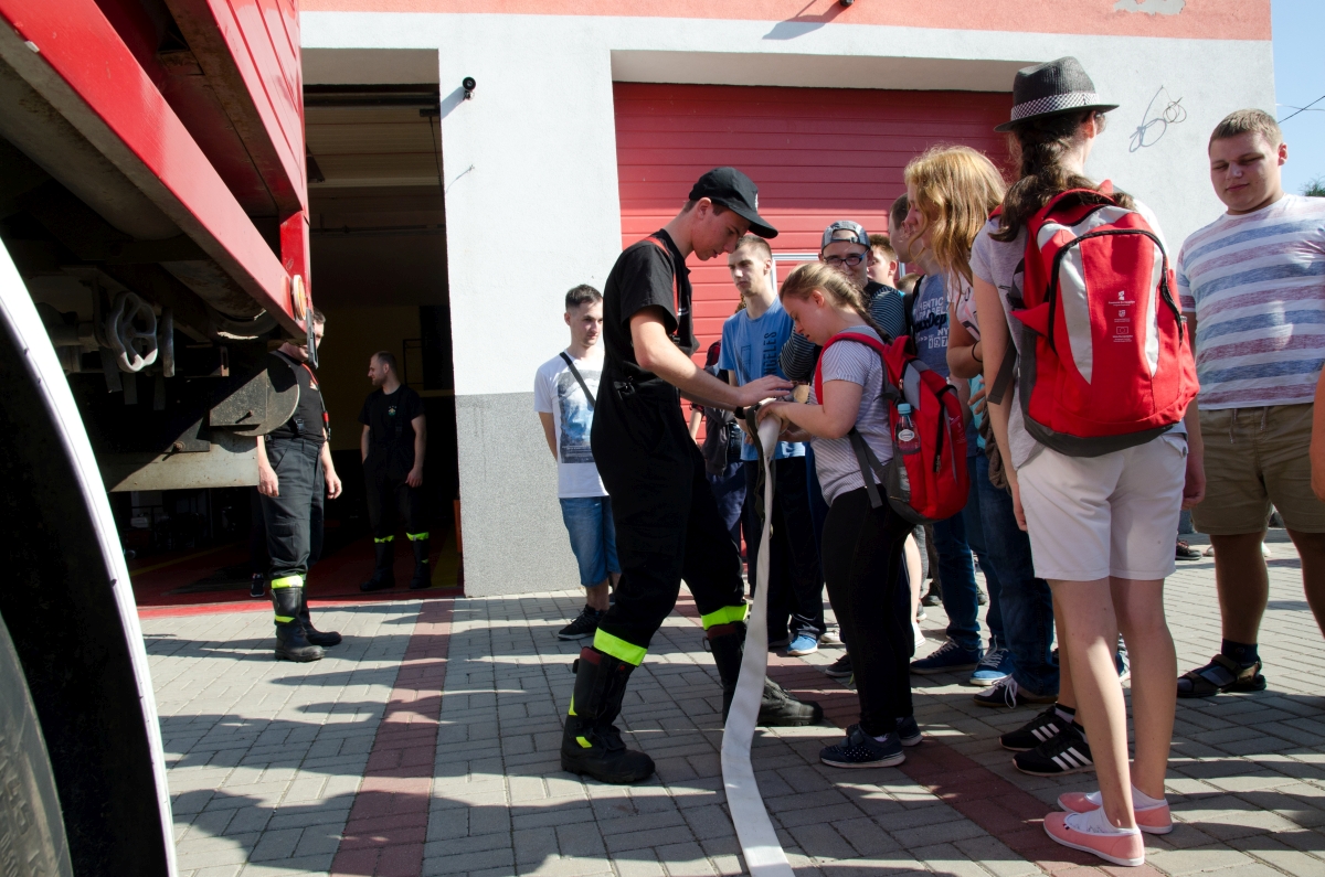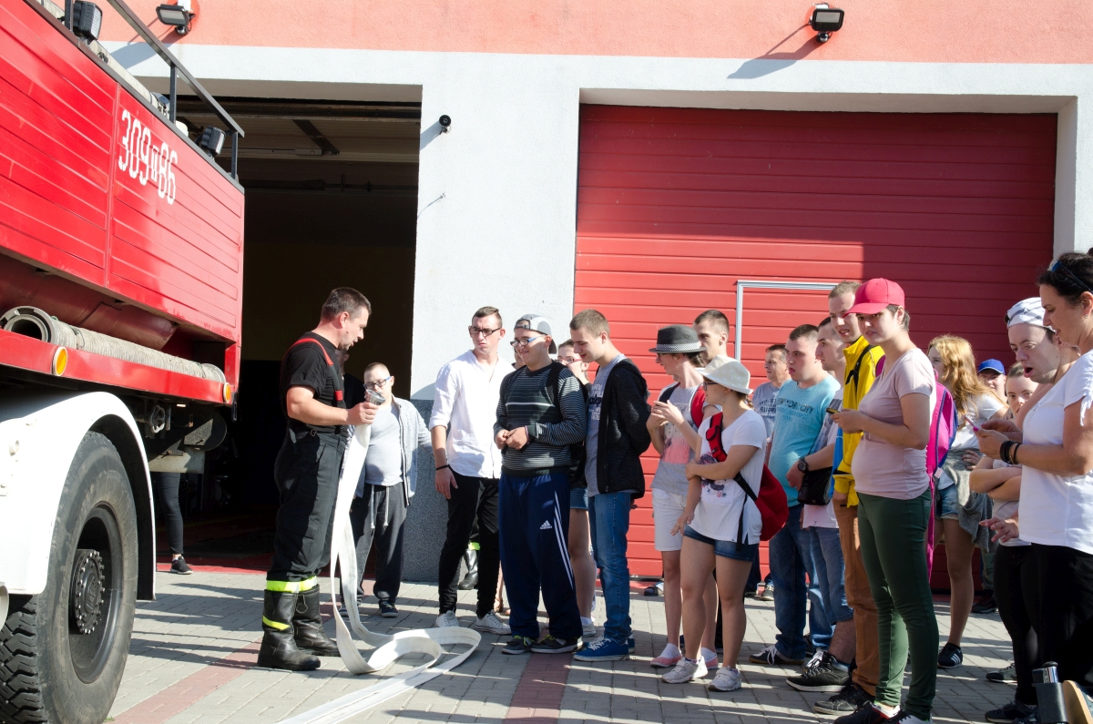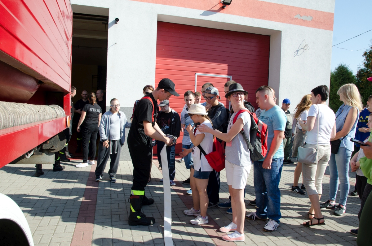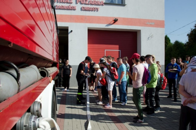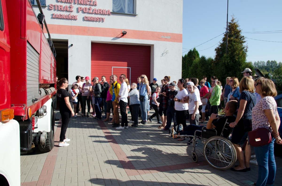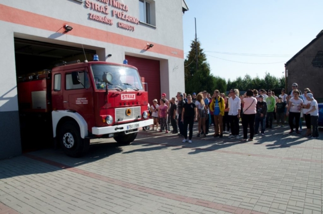Dnia 20 września wybraliśmy się całą szkołą na super wycieczkę. Najpierw obejrzeliśmy zabytkowy Dąb Bartek. Pani Ewelina Pachocka przekazała nam ciekawe informacje dotyczące historii związanej z pomnikiem przyrody. Potem udaliśmy się w drogę do Ochotniczej Straży Pożarnej w Chrustach. Tam przy wesołej muzyce, wspólnej zabawie i grillu miło spędziliśmy czas. Z zainteresowaniem słuchaliśmy opowieści strażaków o ich ciężkiej i odpowiedzialnej pracy. Mogliśmy z bliska obejrzeć samochód i sprzęt strażacki.