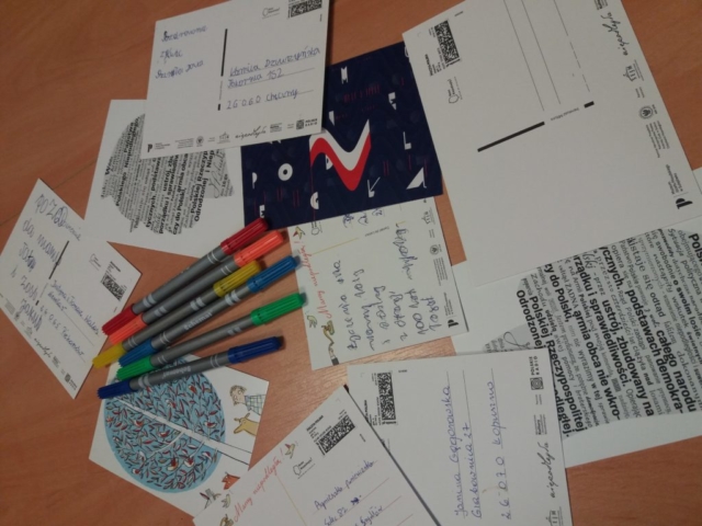 Uczniowie naszej placówki włączyli się do akcji „Wyślij kartkę”, podczas której własnoręcznie wypisywali życzenia dla swoich najbliższych z okazji 100 – lecia odzyskania niepodległości.