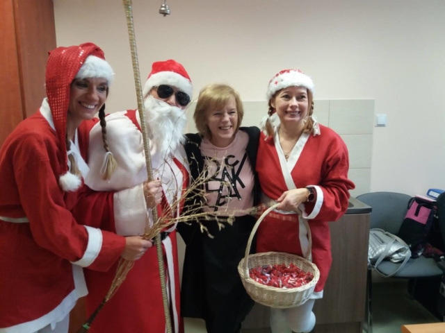 W piątkowe przedpołudnie naszą szkołę ogarnęło mikołajkowe szaleństwo. Wszędzie krzątały się cudnej urody Śnieżynki zapowiadając przybycie najważniejszego Gościa. Mikołaj pojawił się z workiem pełnym prezentów, ale nie zapomniał również o rózdze dla tych, którzy nie do końca byli grzeczni. Odwiedził każdą klasę, porozmawiał z każdym dzieckiem, zatańczył salsę dyskretnie przytrzymując brzuch i pozował do wspólnych zdjęć, które możecie teraz obejrzeć.