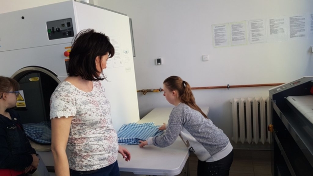 Wczoraj uczniowie Szkoły Przysposabiającej do Pracy gościli w bardzo ciekawym miejscu – pralni wodnej NEMO, prowadzonej przez Zakład Aktywności Zawodowej (ZAZ Kielce). Dziś na korytarzach naszej szkoły da się słyszeć rozmowy młodzieży, która nadal jest pod wrażeniem tego miejsca i ludzi w nim pracujących. Niektórym z uczniów tak bardzo zmieniła się perspektywa, że zobaczyli pralnię nie tylko jako miejsce, w którym perfekcyjnie można wyprać odzież, bieliznę stołową czy pościel, ale zaczęli patrzeć na pralnię jako miejsce, w którym w przyszłości chcieliby podjąć pracę.