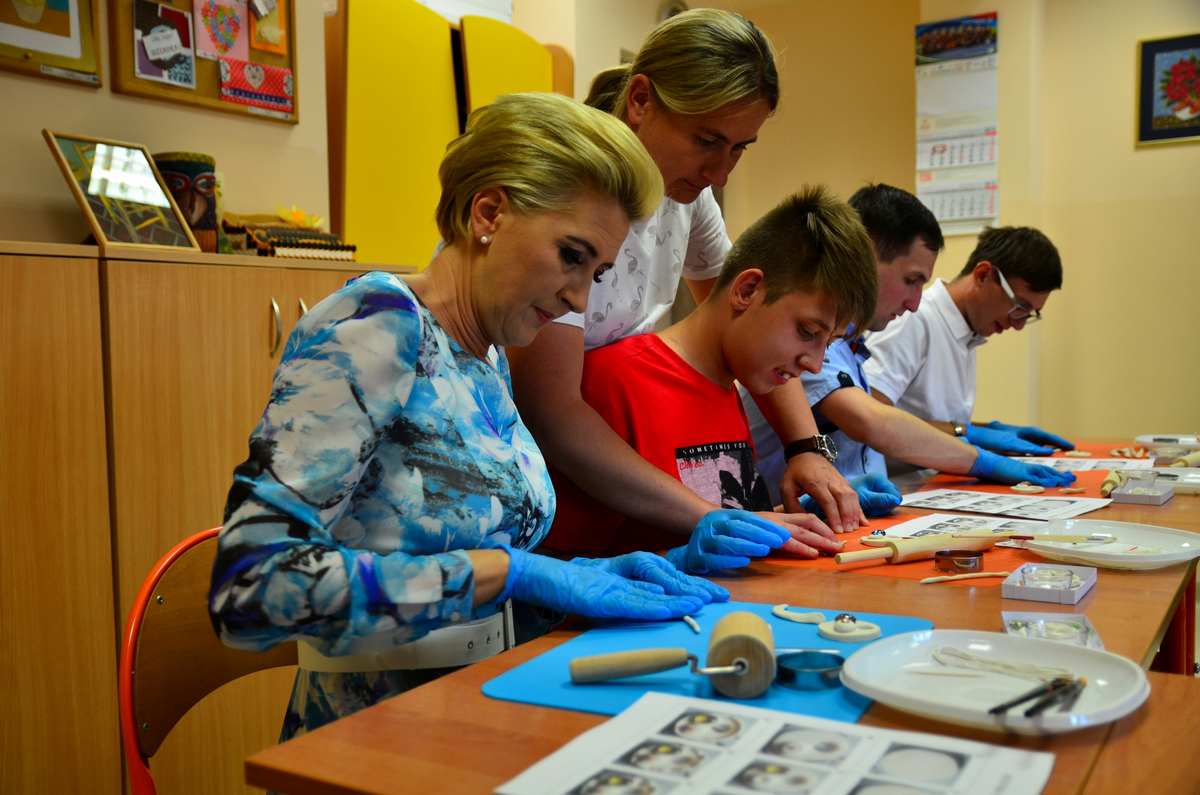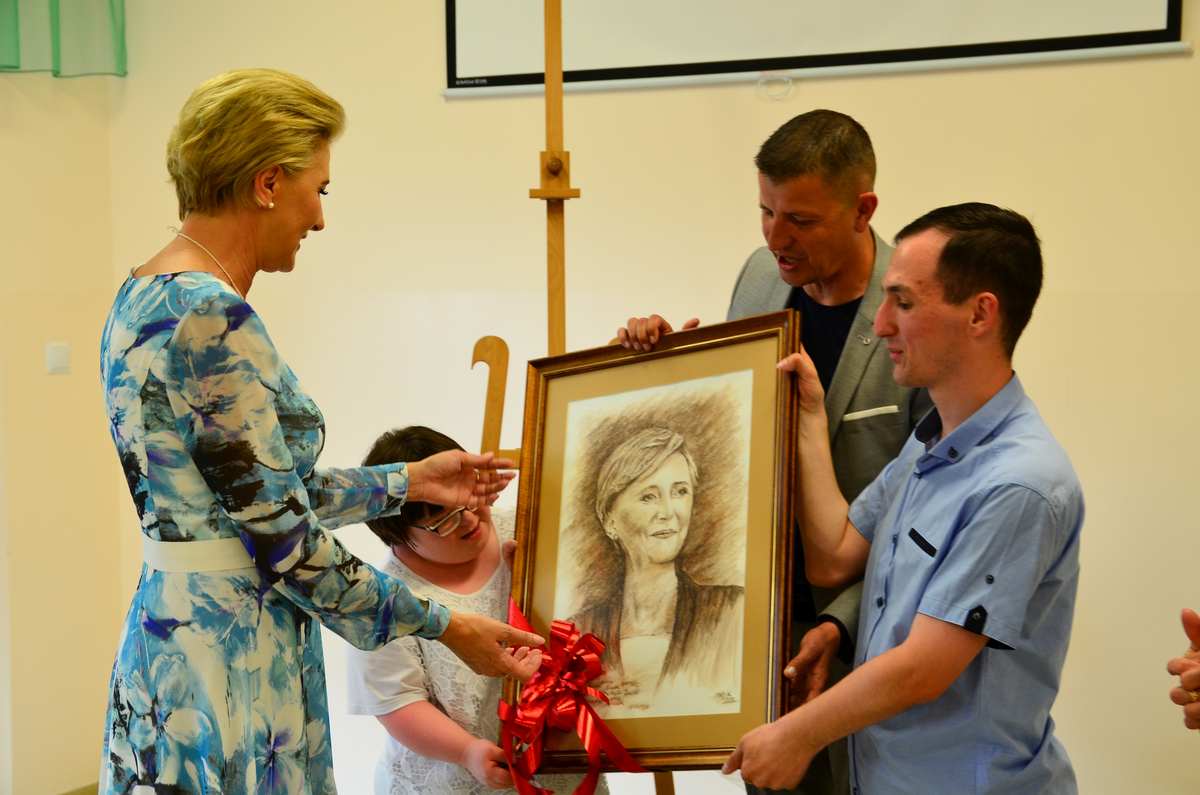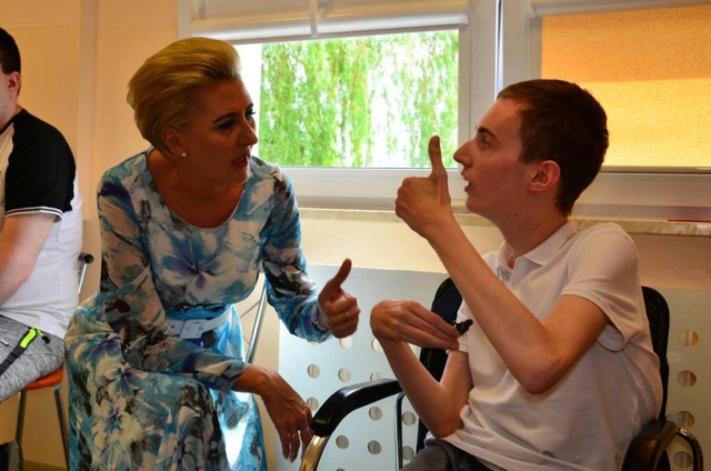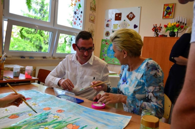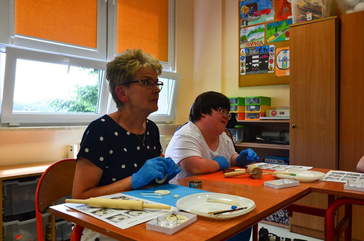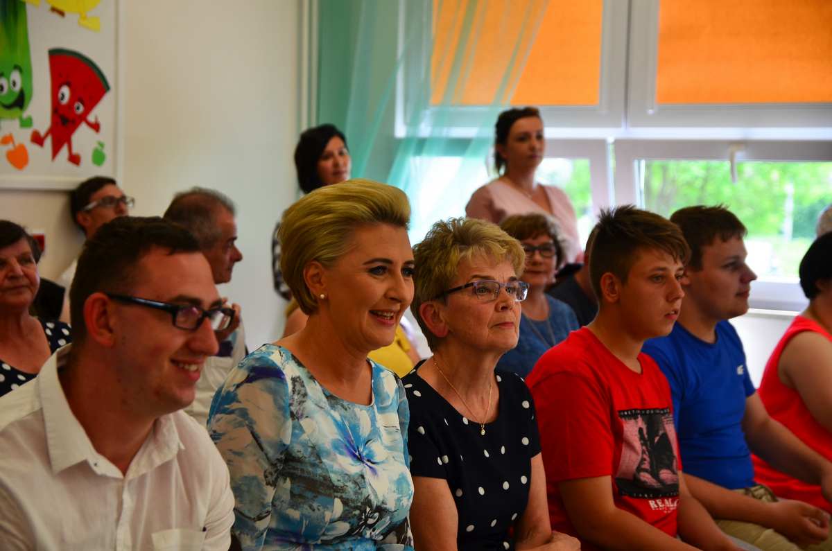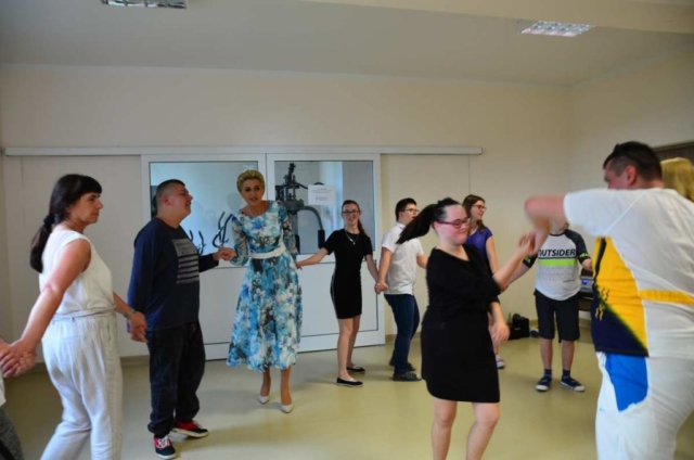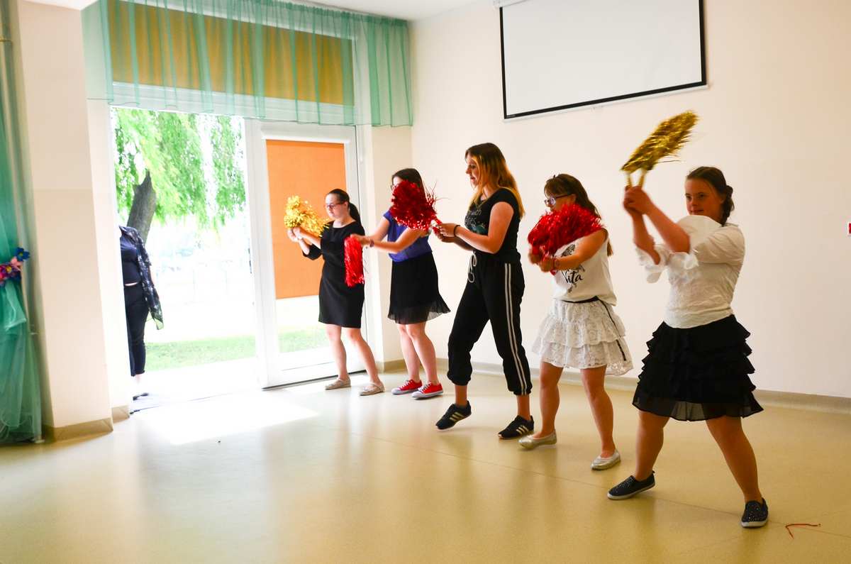 Około południa pani dyrektor Kazimiera Nowak w asyście uczniów powitała Panią Prezydentową w murach naszej placówki. Następnie młodzież zaprezentowała przygotowany wcześniej układ taneczno – muzyczny. Po serdecznym odbiorze występu uczniów przez Panią Prezydentową, cały bieg wydarzeń wymknął się spod ustalonego scenariusza. Młodzież z całym zaangażowaniem i wrodzoną spontanicznością, oprowadziła znamienitego Gościa po naszym Ośrodku rozmawiając o swoich pasjach, ulubionych zajęciach, słuchaniu muzyki, kulinariach, a nawet sadze „Gwiezdne wojny”. Pani Prezydentowa Agata Kornhauser – Duda ze znakomitym skutkiem wzięła czynny udział w zajęciach plastycznych malowania majowej łąki i rękodzielniczych, w czasie których wykonała z młodzieżą piękną glinianą broszkę. Była również okazja do rozmów z rodzicami, nauczycielami i pracownikami Ośrodka, a nawet znalazł się czas na taniec podczas krótkiej dyskoteki szkolnej.