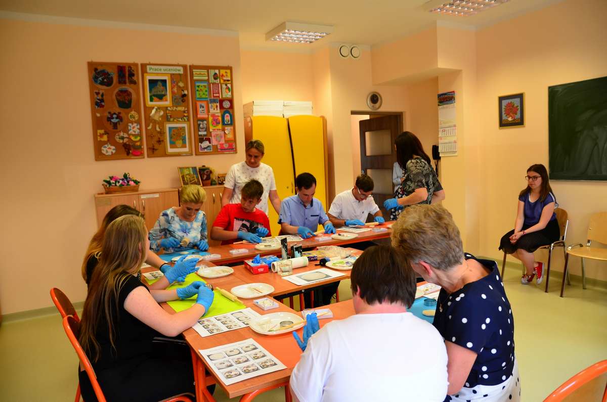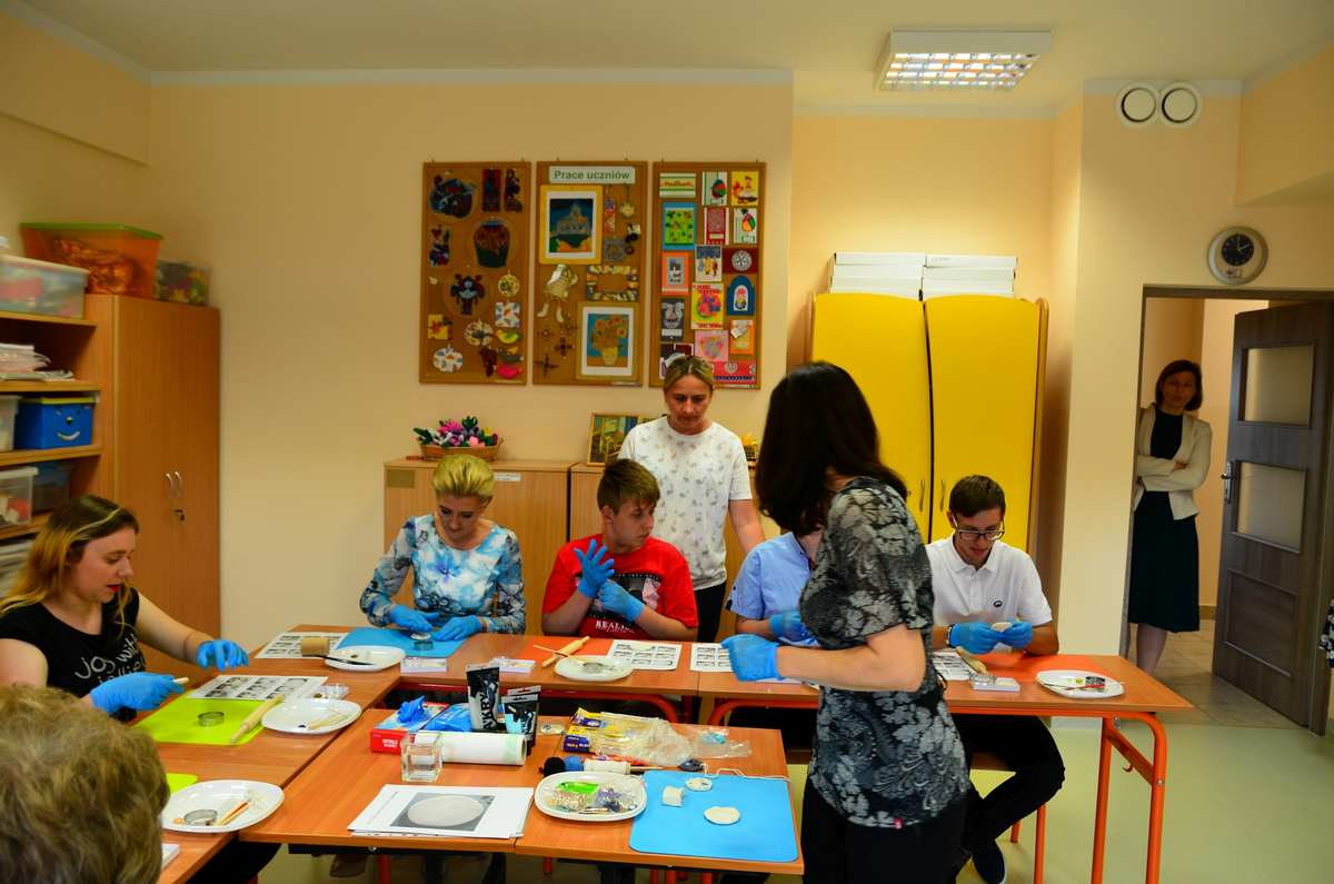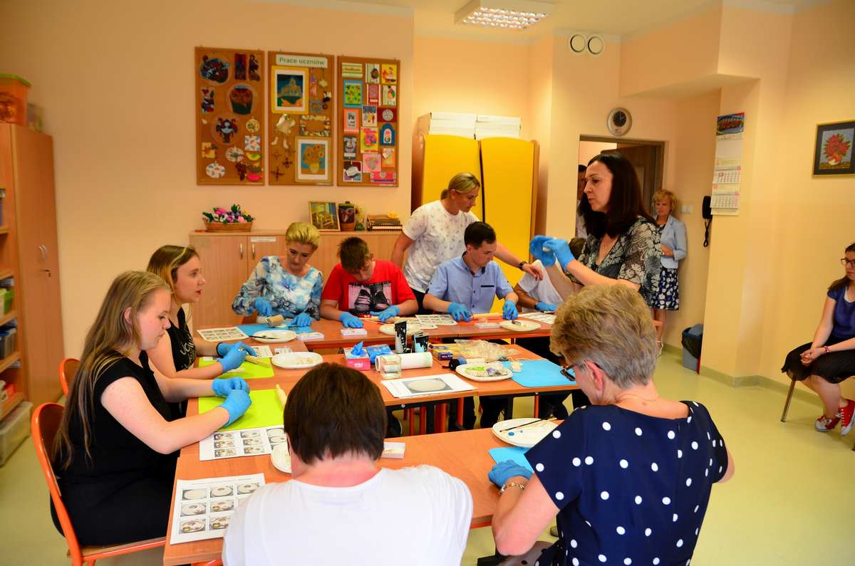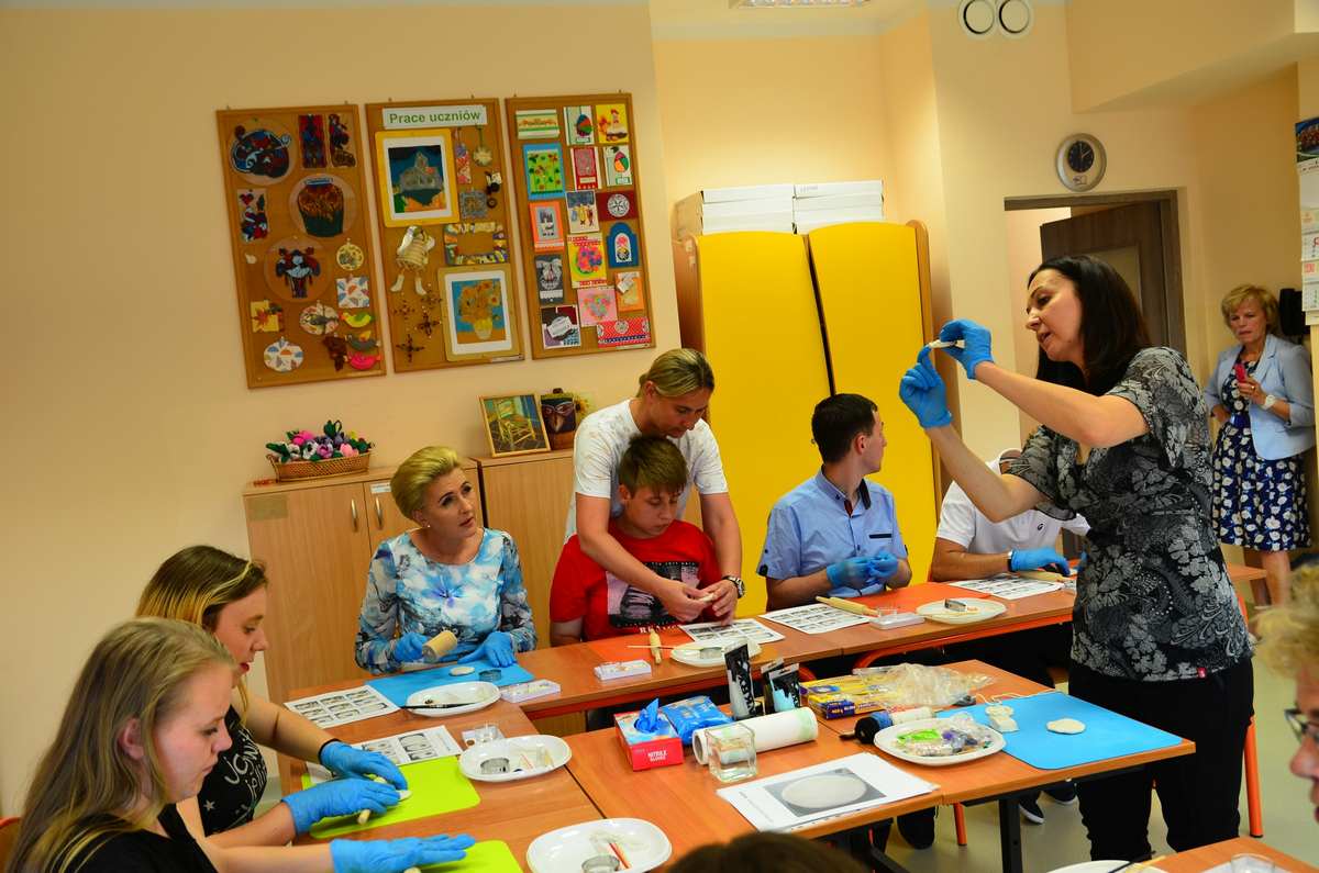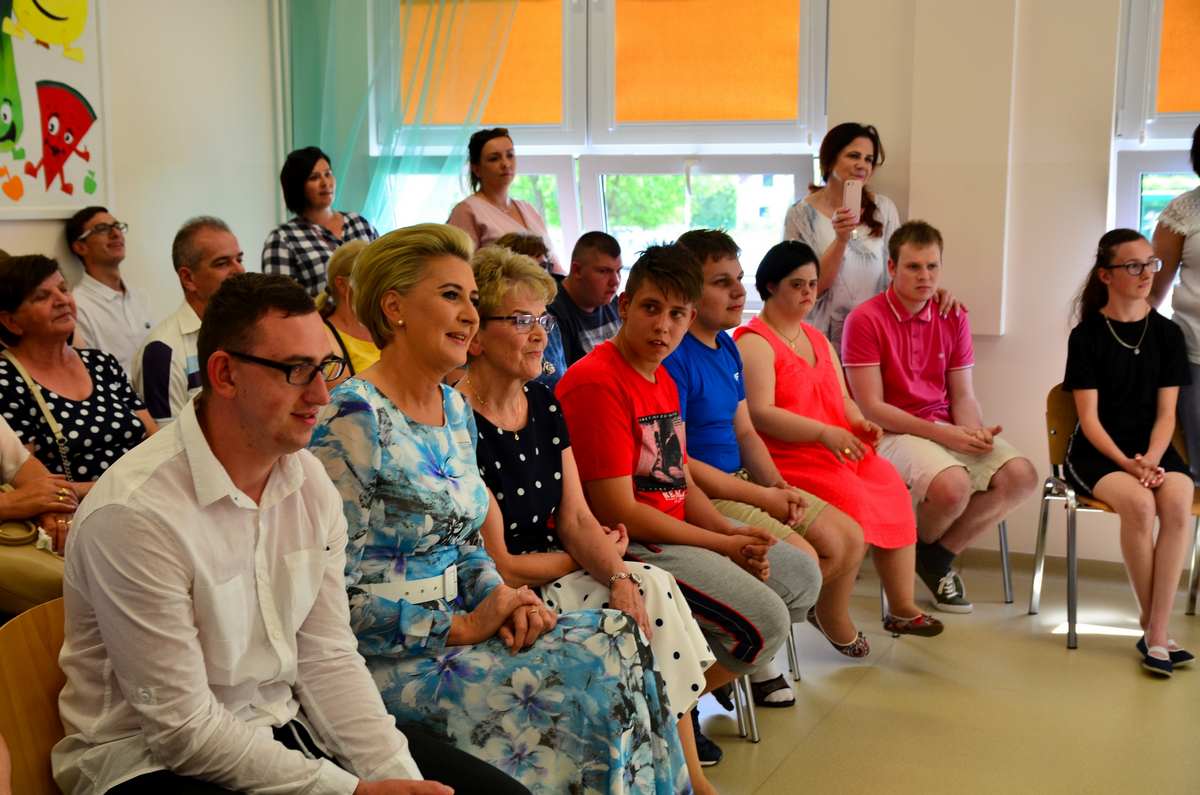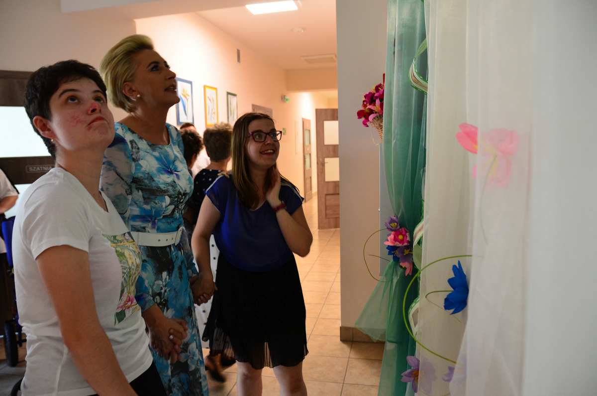 Około południa pani dyrektor Kazimiera Nowak w asyście uczniów powitała Panią Prezydentową w murach naszej placówki. Następnie młodzież zaprezentowała przygotowany wcześniej układ taneczno – muzyczny. Po serdecznym odbiorze występu uczniów przez Panią Prezydentową, cały bieg wydarzeń wymknął się spod ustalonego scenariusza. Młodzież z całym zaangażowaniem i wrodzoną spontanicznością, oprowadziła znamienitego Gościa po naszym Ośrodku rozmawiając o swoich pasjach, ulubionych zajęciach, słuchaniu muzyki, kulinariach, a nawet sadze „Gwiezdne wojny”. Pani Prezydentowa Agata Kornhauser – Duda ze znakomitym skutkiem wzięła czynny udział w zajęciach plastycznych malowania majowej łąki i rękodzielniczych, w czasie których wykonała z młodzieżą piękną glinianą broszkę. Była również okazja do rozmów z rodzicami, nauczycielami i pracownikami Ośrodka, a nawet znalazł się czas na taniec podczas krótkiej dyskoteki szkolnej.