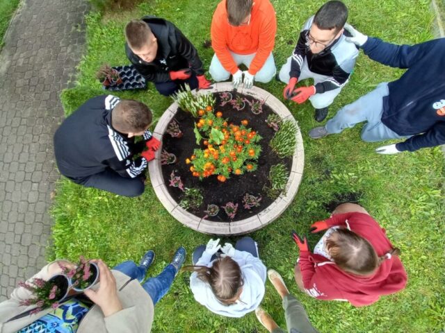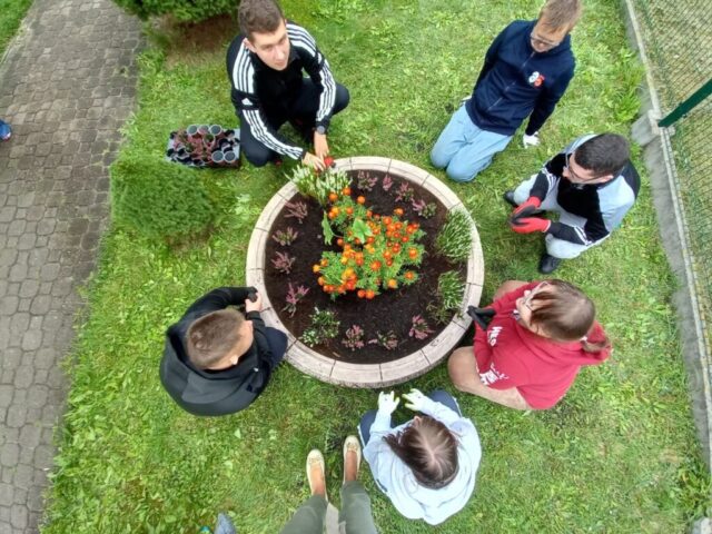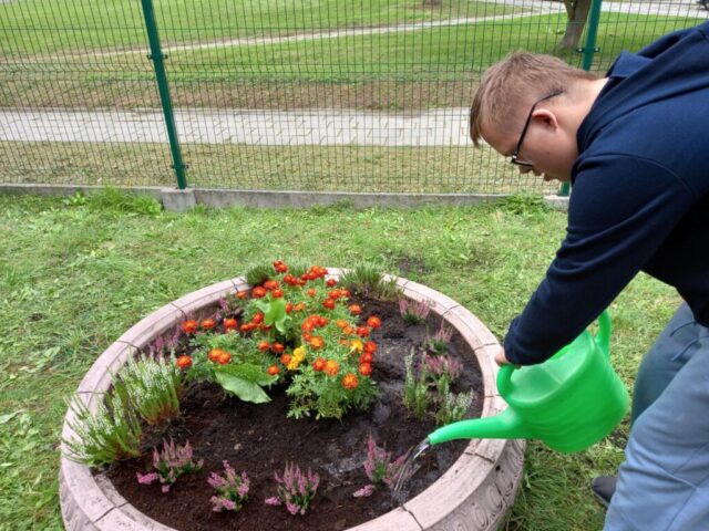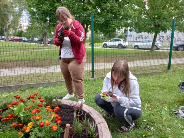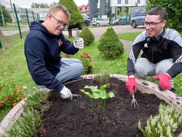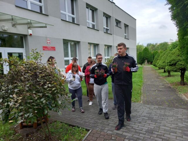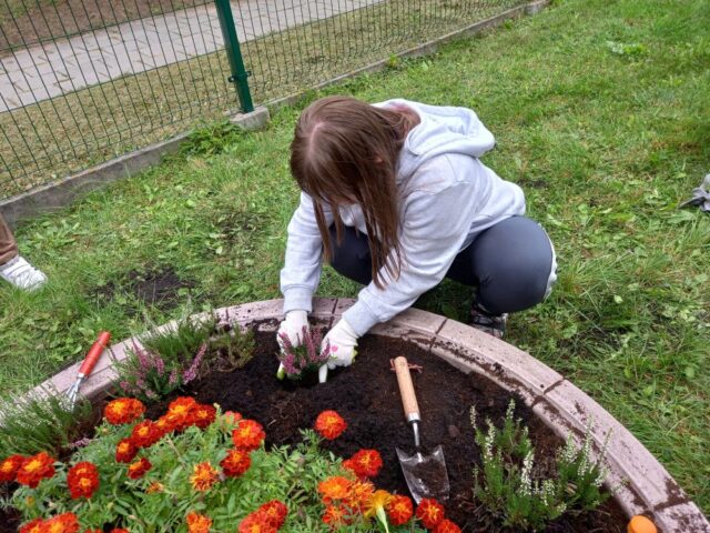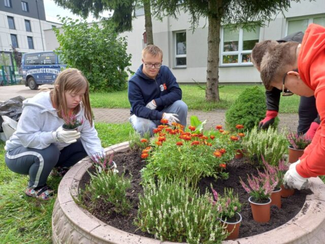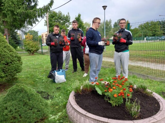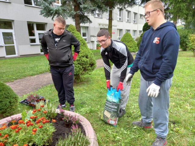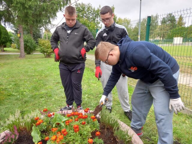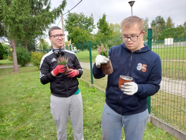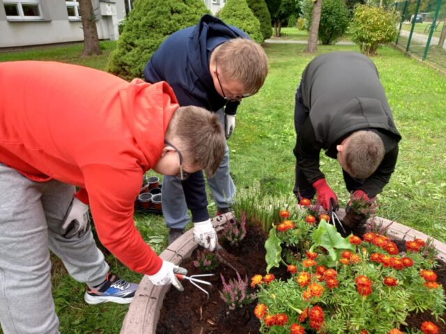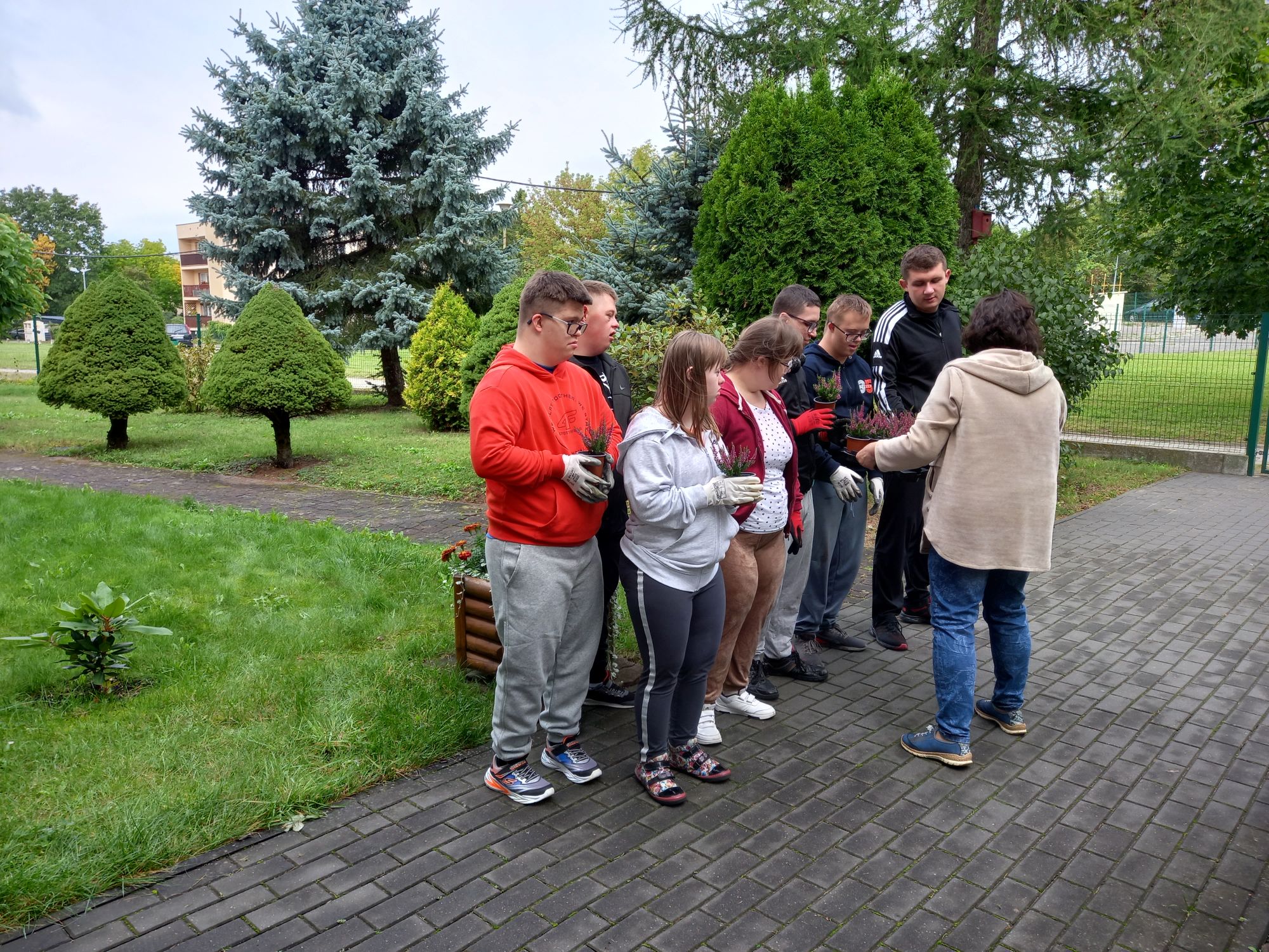 Wraz z przyjściem jesieni uczniowie Szkoły Przysposabiającej do Pracy sadzili wrzosy, które nieodłącznie kojarzą się z aktualną porą roku. Wspólnie stworzyli kolorową rabatę pełną pięknych roślin. Poprzez praktyczne działania młodzież uczyła się, jak dbać o rośliny, pielęgnować ogród i zrozumieć procesy zachodzące w poszczególnych porach roku. Wszyscy z zaangażowaniem uczestniczyli w zajęciach, które rozwijały praktyczne umiejętności ogrodnicze, budowały współpracę między uczniami i pozytywne relacje w grupie.