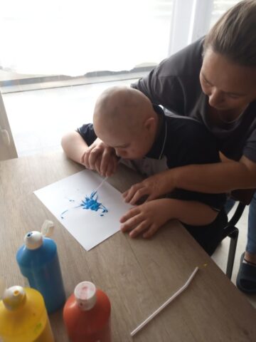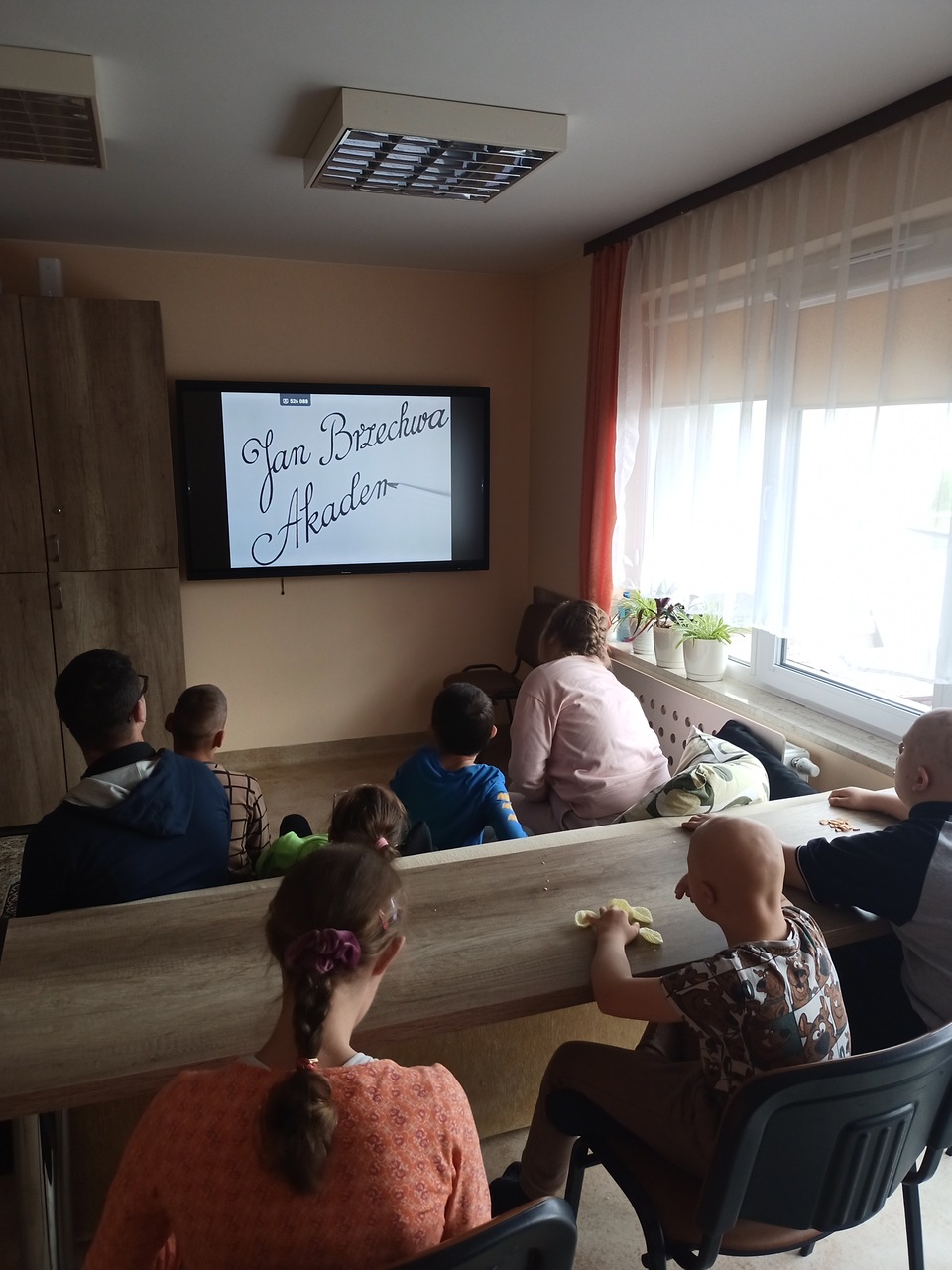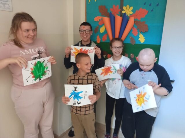 „Witajcie w naszej bajce….” – słowa tej piosenki wprowadziły nas w świat magicznej Akademii Pana Kleksa. Uczestnicząc w zajęciach realizowanych w ramach programu autorskiego „ Animowana literatura dziecięca”, wychowankowie grup wychowawczych poznali fantastycznego nauczyciela Ambrożego Kleksa oraz niezwykłe przygody jego uczniów. Obejrzeli film: „Akademia Pana Kleksa”, wysłuchali wybranych fragmentów książki J. Brzechwy o tym samym tytule. Z dużym zaangażowaniem uczestniczyli w lekcji kleksografii, której efektem są ciekawe prace plastyczne.