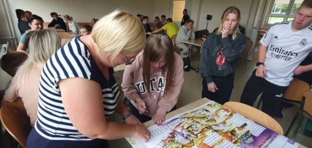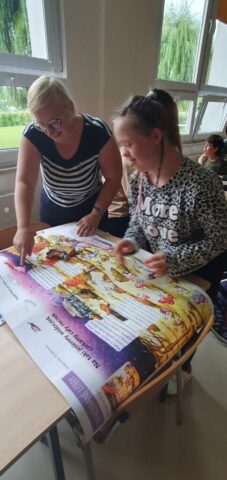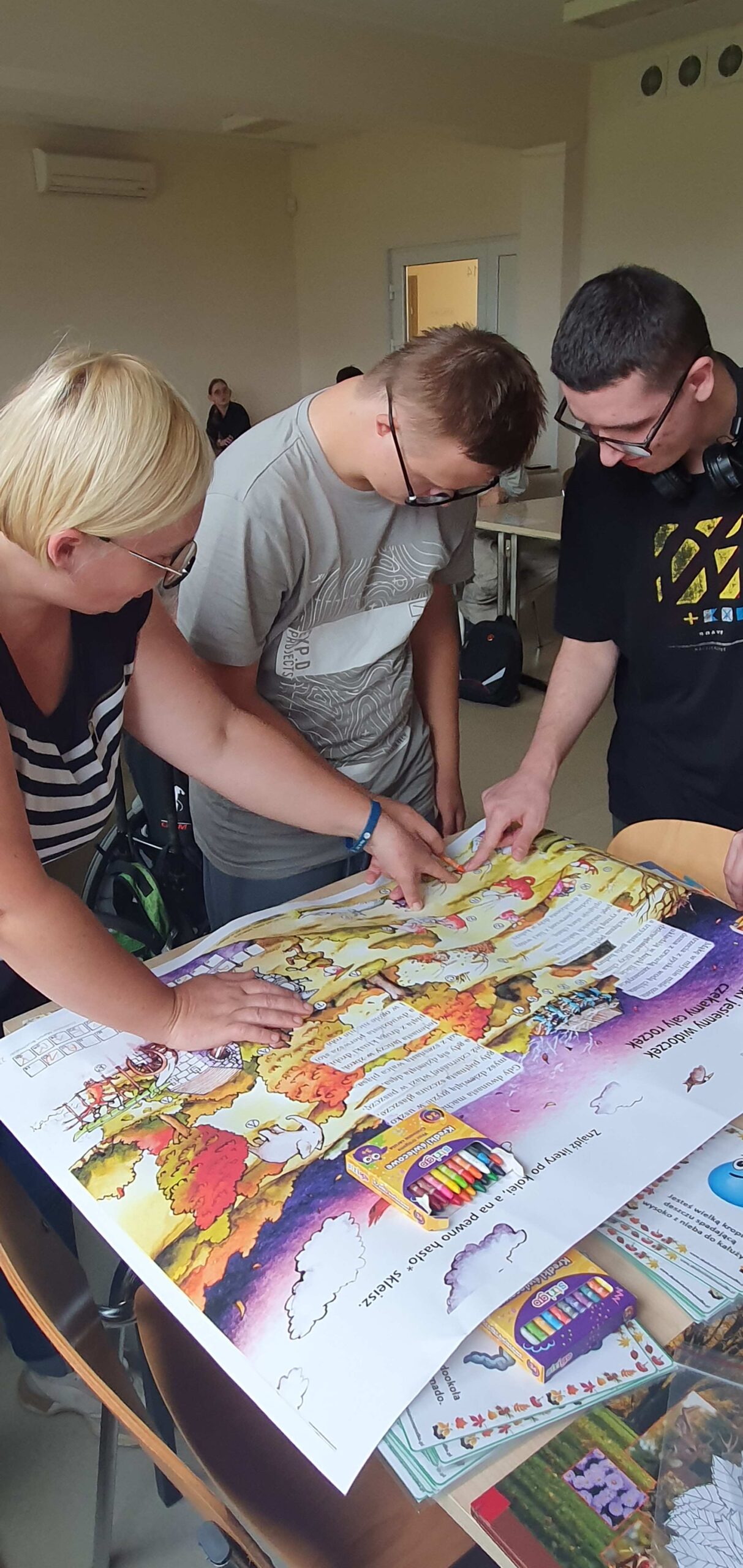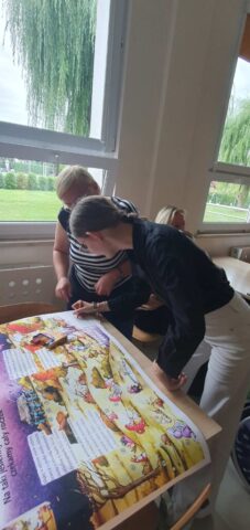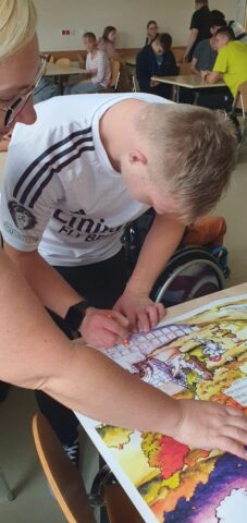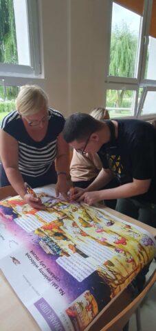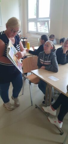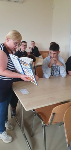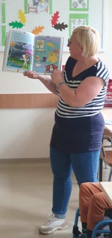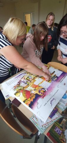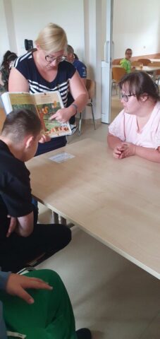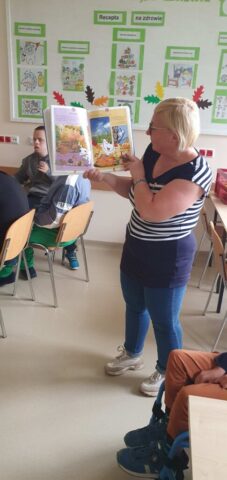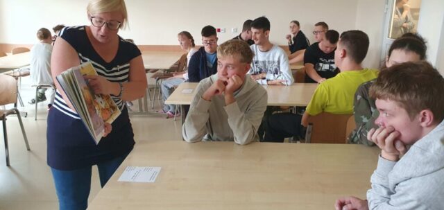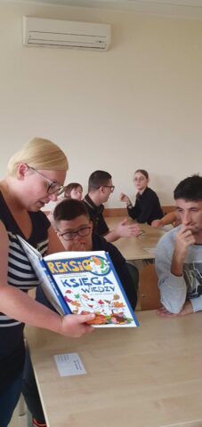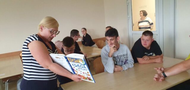 W ramach współpracy z Wojewódzką Biblioteką Publiczną w Kielcach uczniowie Szkoły Przysposabiającej do Pracy spotkali się z zaprzyjaźnioną z nami panią Gosią Kędziorską. Tym razem uczestniczyliśmy w warsztatach bibliotecznych na temat: „Nadchodzi jesień.” Pani bibliotekarka rozmawiała z nami na temat zbliżającej się jesieni, pokazywała nam piękne książki z jesiennymi ilustracjami. Usłyszeliśmy opowiadanie o jesiennych przygodach Basi, rozwiązywaliśmy zagadki i krzyżówki. Na koniec wykonaliśmy wspólnie pracę plastyczną- jesienne drzewo.