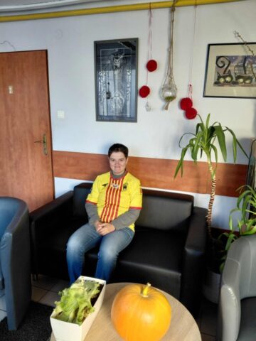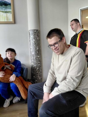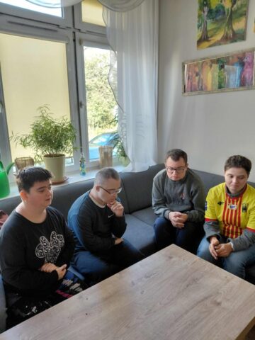W dniu 23 września uczniowie ze Szkoły Przysposabiającej do Pracy odwiedzili Środowiskowy Dom Samopomocy w Kielcach, który mieści się przy ulicy Kołłątaja 4. Jest to placówka pobytu dziennego dla osób, które ze względu na różnego typu niepełnosprawności potrzebują wsparcia i pomocy. ŚDS działa od poniedziałku do piątku w godzinach 7.00 – 16.00. Zajęcia odbywają się w formie terapii grupowej i indywidualnej – warsztatów i treningów umiejętności. Z oferty ŚDS mogą korzystać osoby, które ukończyły 18 lat i spełniają wymagane warunki. Dla każdego uczestnika opracowany jest indywidualny plan postępowania wspierająco – aktywizującego. Podczas naszej wizyty spotkaliśmy wielu znajomych, którzy wspólnie z Panią dyrektor Beatą Radek chętnie oprowadzili nas po placówce. Duże wrażenie zrobiła na nas Sala Doświadczania Świata wyposażona w łóżko wodne, interaktywne elementy i maty sensoryczne.