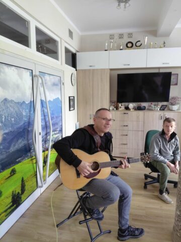 Na zakończenie pobytu oddaliśmy się wspólnemu, radosnemu muzykowaniu – tej aktywności przewodził Filip – absolwent naszej Szkoły.