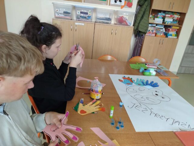 W naszej szkole miniony tydzień (29.09. – 03.10.2025) upłynął pod znakiem empatii, szacunku i współpracy. Uczniowie wzięli udział w warsztatach, zabawach integracyjnych i działaniach plastycznych pod hasłem „Malujemy świat bez przemocy”. Całość zakończyła się szkolną imprezą integracyjną, podczas której przypomnieliśmy, że razem tworzymy bezpieczną i przyjazną szkołę! Poniżej relacje z warsztatów jakie zostały przeprowadzone w ramach akcji.