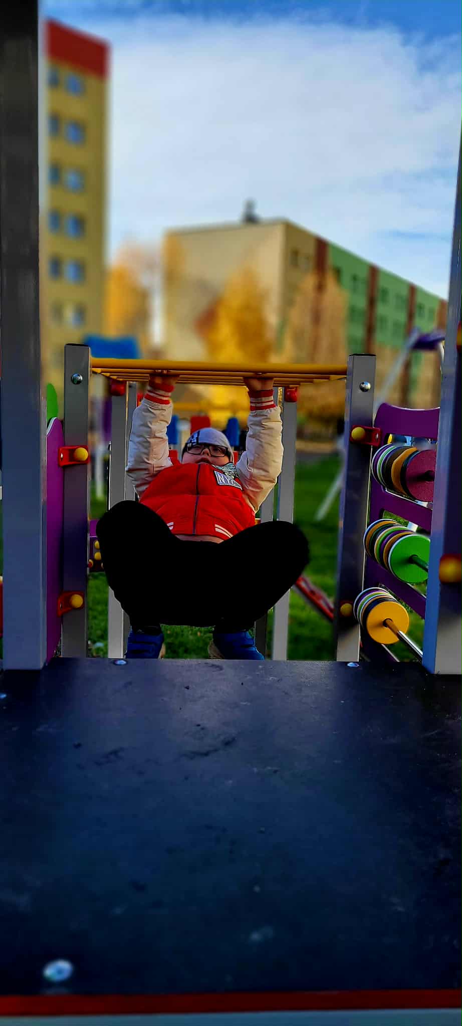 Korzystając z doskonałej aury uczniowie mieli możliwość podziwiania przepięknych jesiennych barw. Pokonywali tory przeszkód i korzystali z urządzeń siłowni zewnętrznej i placu zabaw.