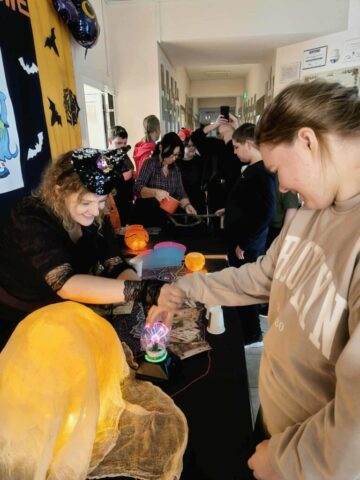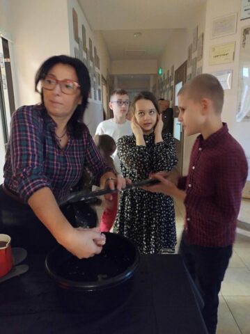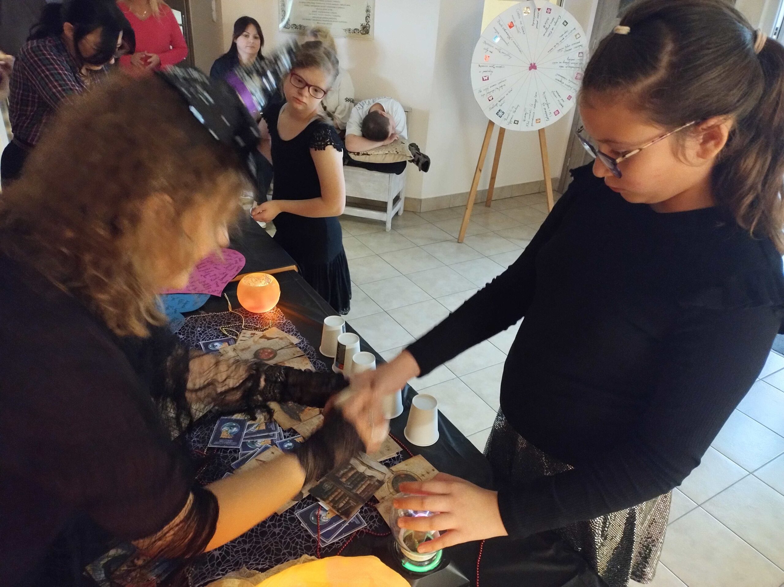 Sala taneczna jak zwykle wypełniona po brzegi. Wyśmienici tancerze pląsają, skaczą, tańczą, wykonują układy taneczne w rytm ulubionej muzyki. Disco, pop, folk idealnie trafiają w gust uczestników zabawy. W między czasie do akcji wkraczają nasze panie, organizując zabawy i konkursy przy muzyce dla starszych i młodszych uczniów. Na szkolnym hallu wchodzimy już w inny wymiar. Szkolne wróżki pomagają w najważniejszej wróżbie, czyli laniu wosku. Można również poznać przyszłość, dzięki losom, kościom, magicznym kartom, czy też kole „kole zdarzeń”. A wszystko to w atmosferze półmroku, rozświetlonego blaskiem świec i andrzejkowych lampek.