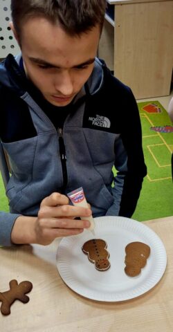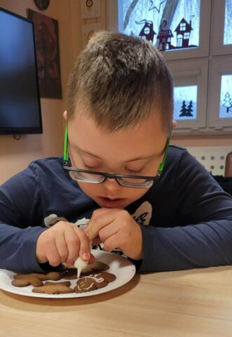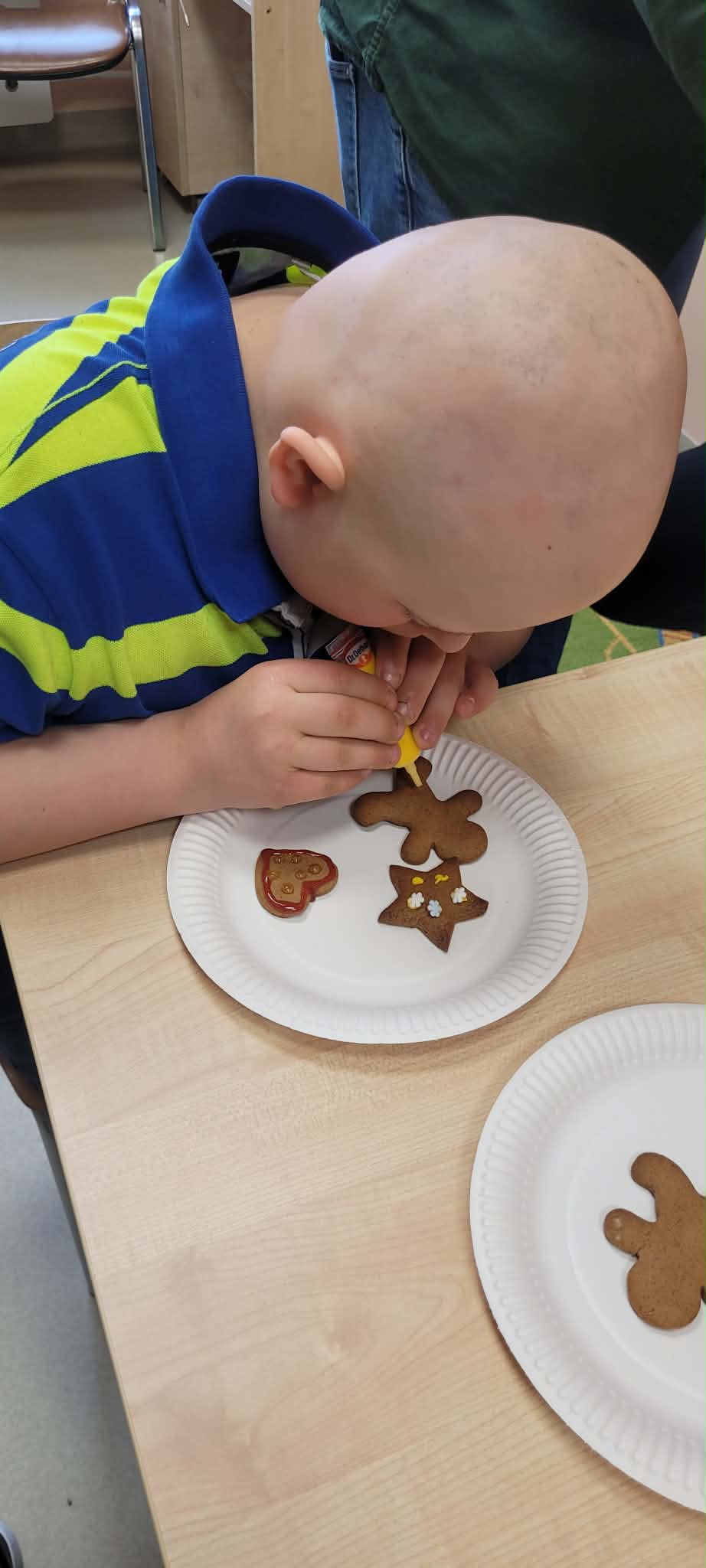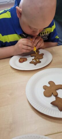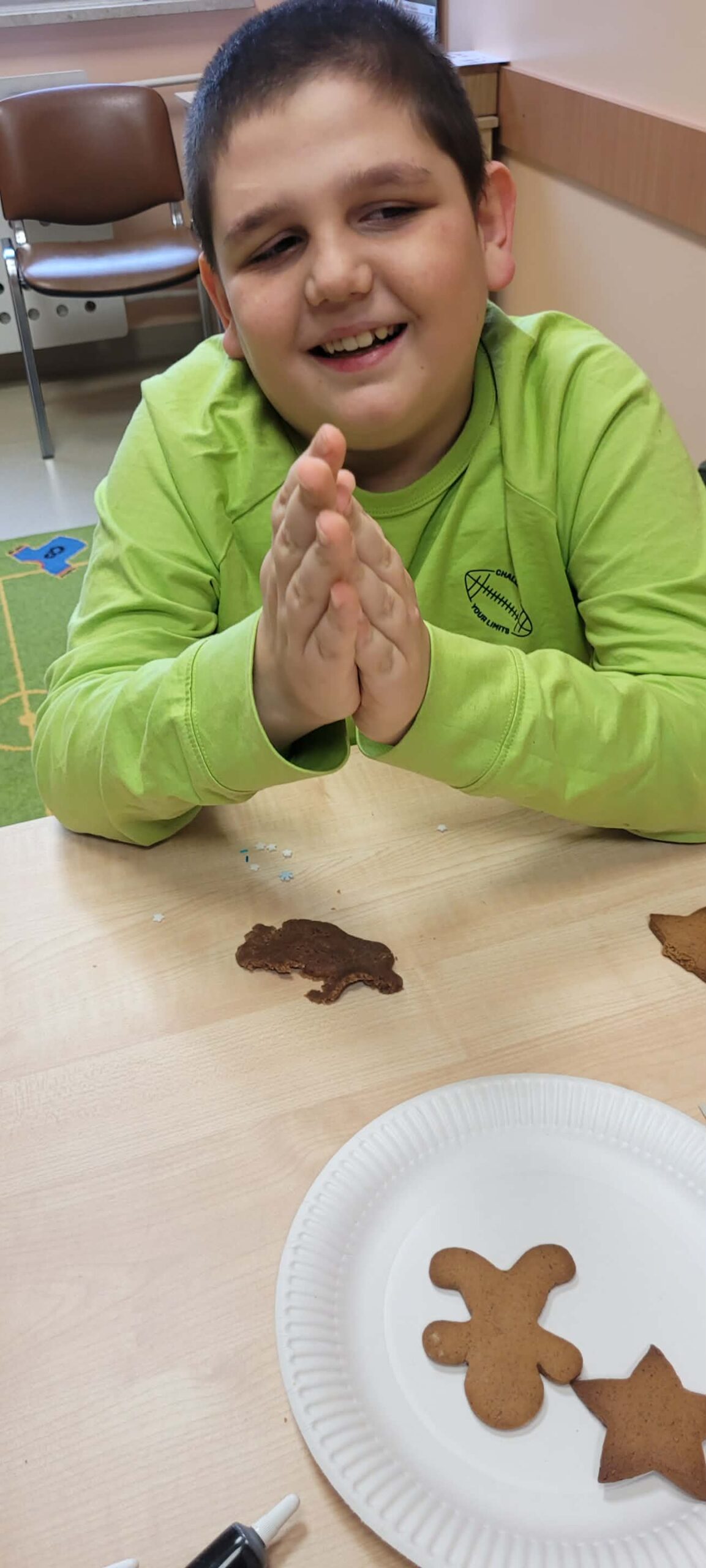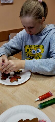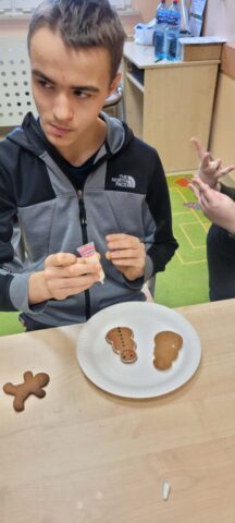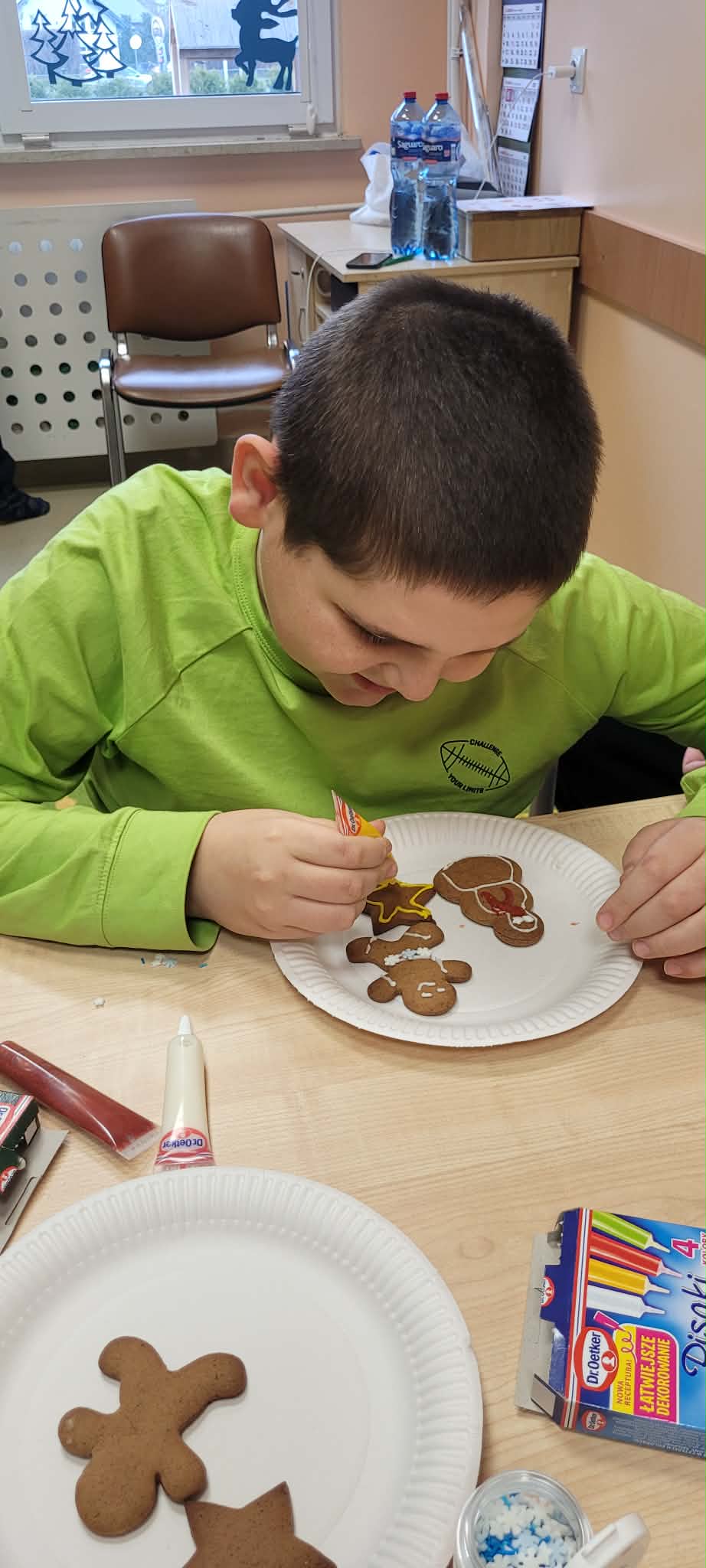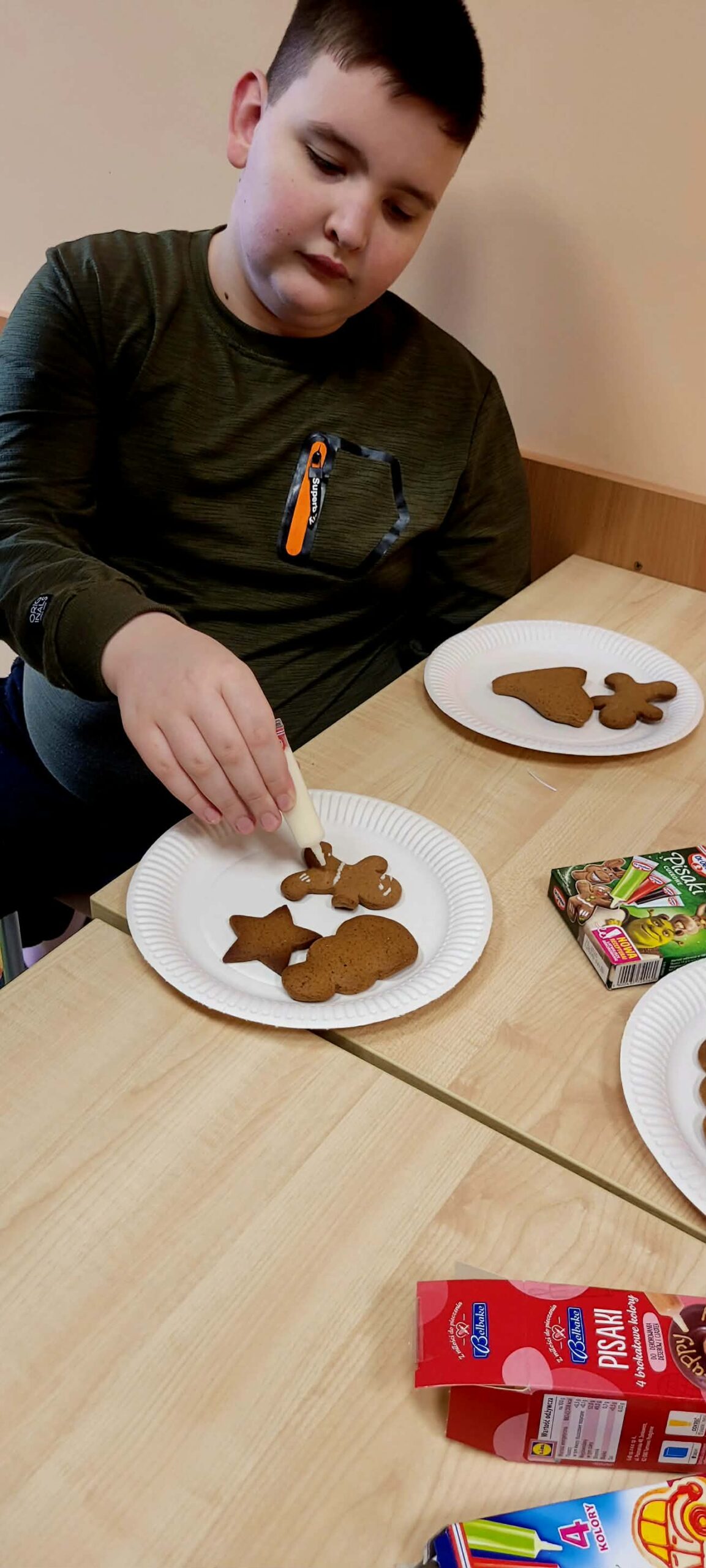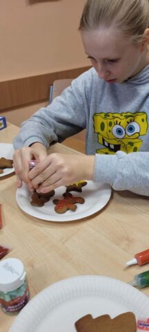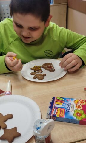 Dzisiejszy dzień był wyjątkowo aktywny. Najpierw świetnie bawiliśmy się piernikową masą sensoryczną. Później ozdabialiśmy pierniczki kolorowymi lukrami i ozdobami w świątecznych kształtach.