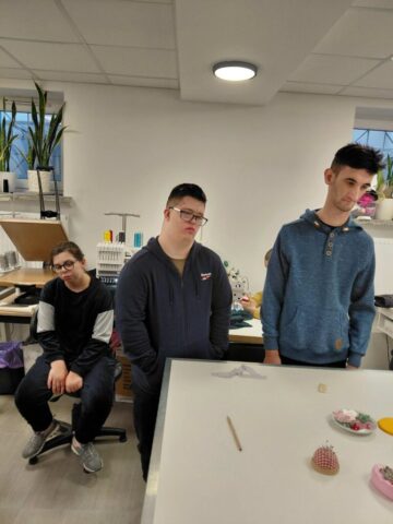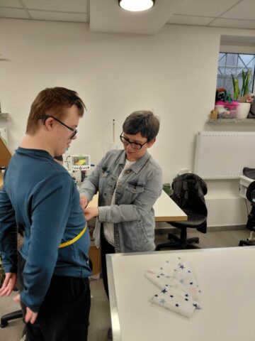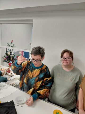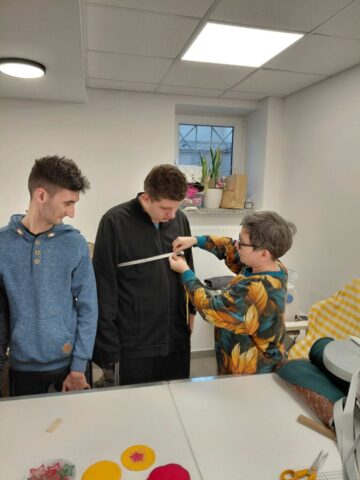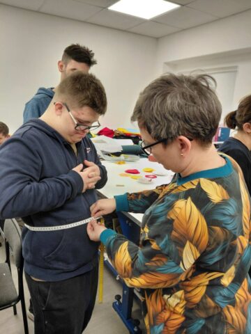W dniu 3.12.2025r oraz 10.12.2025r uczniowie Szkoły Przysposabiającej do Pracy odwiedzili warsztat krawiecki w Centrum Integracji Cudzoziemców przy ulicy Urzędniczej w Kielcach. Pani instruktor krawiectwa zapoznała nas z wyposażeniem pracowni oraz różnego rodzaju maszynami do szycia oraz haftu. Poznaliśmy także różne gatunki materiałów oraz dzianin zgodnie z ich przeznaczeniem. Podziwialiśmu ubrania, torby, serwety, które powstają w pracowni. Poznaliśmy tajniki zdejmowania miary (byliśmy modelami). Zobaczyliśmy krojenie materiału według formy. Ogromną radość sprawiła uczniom własnoręcznie uszyta z filcu i przyozdobiona bombka.