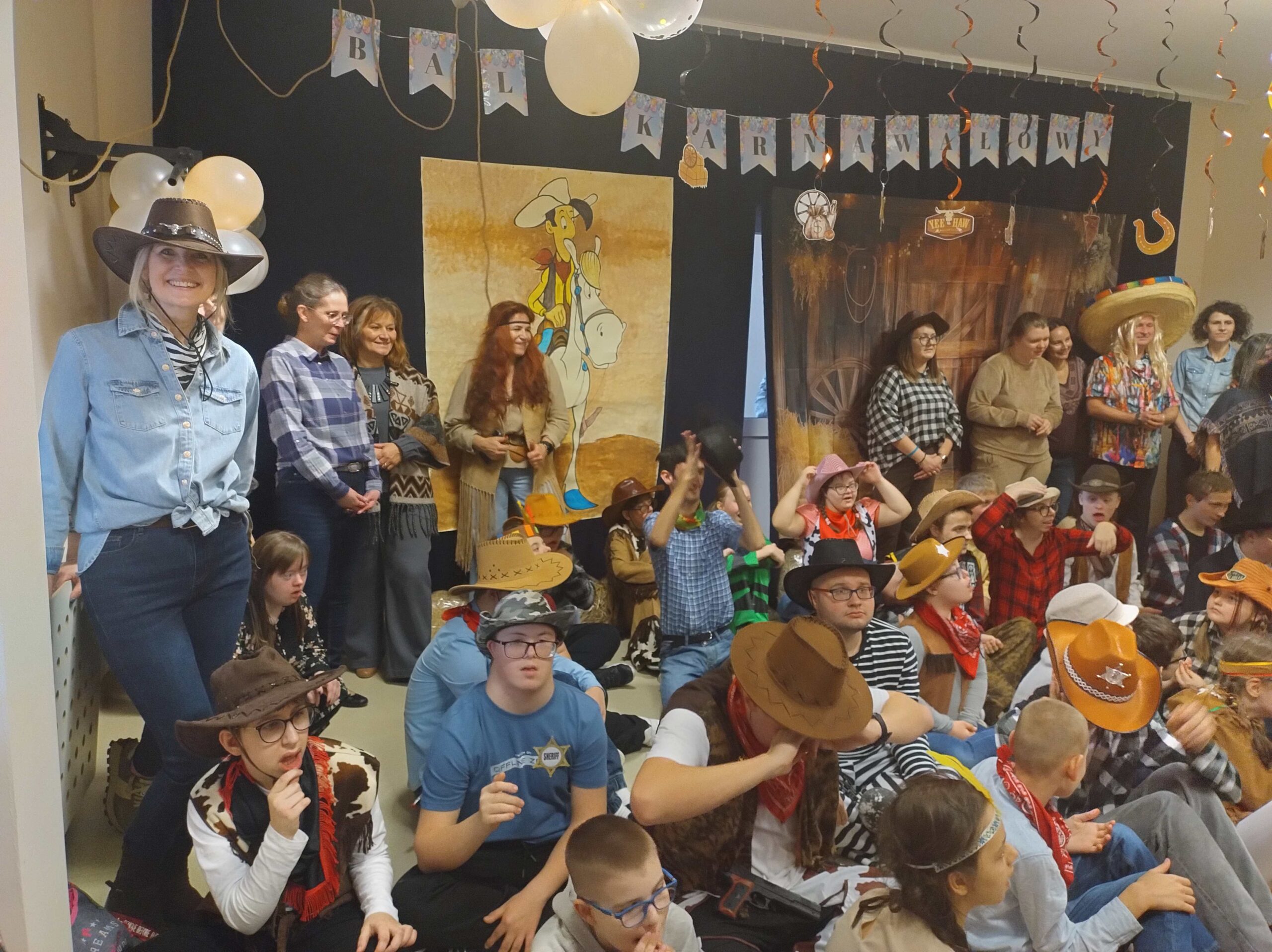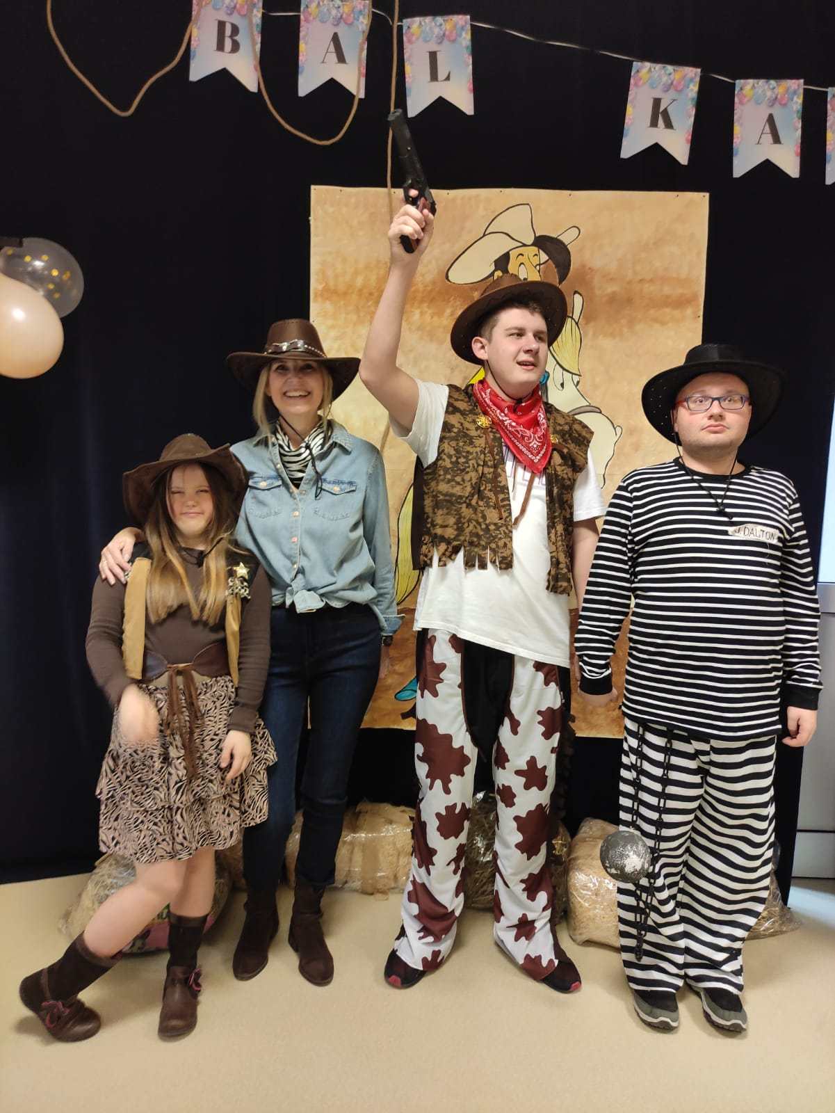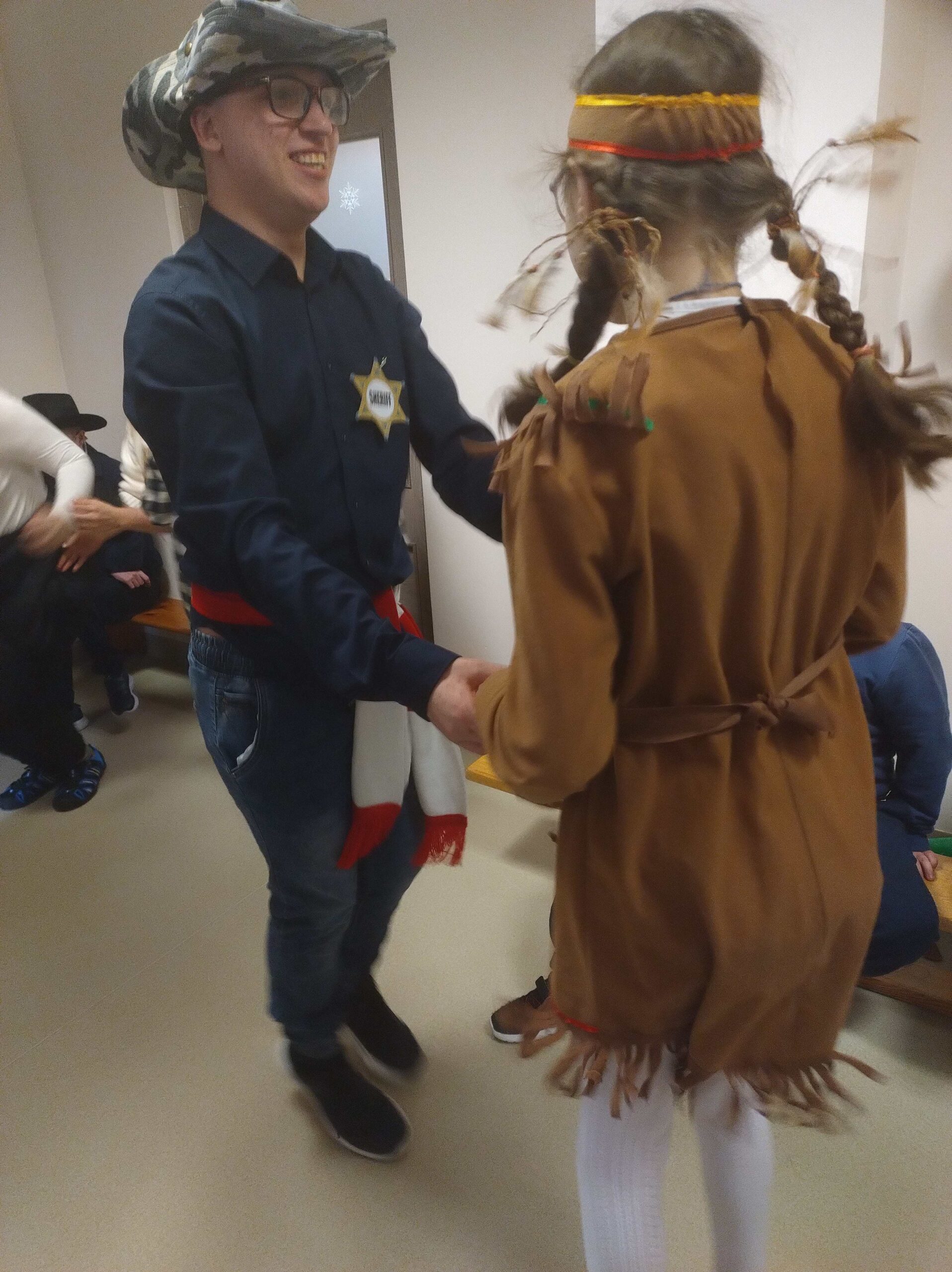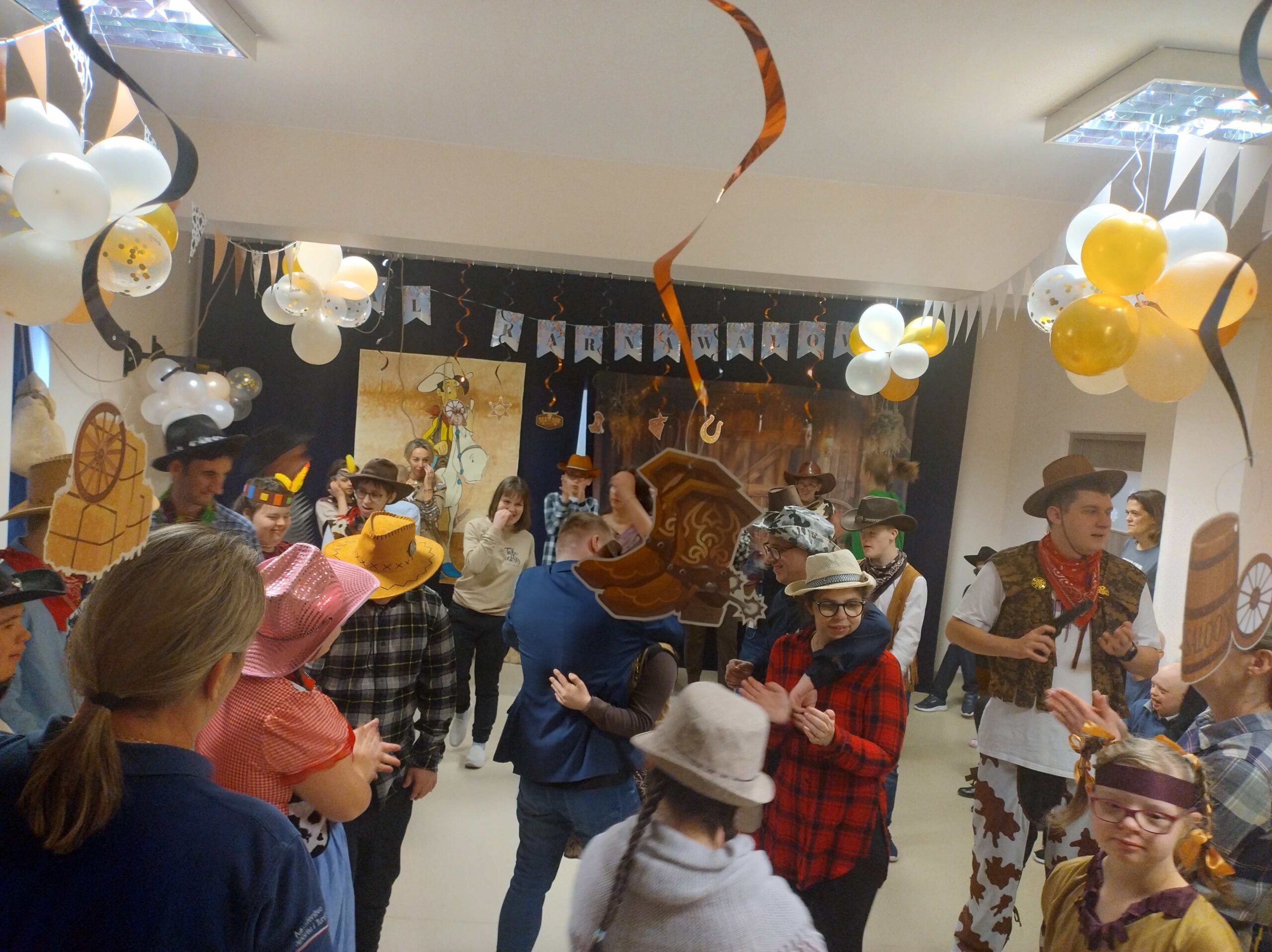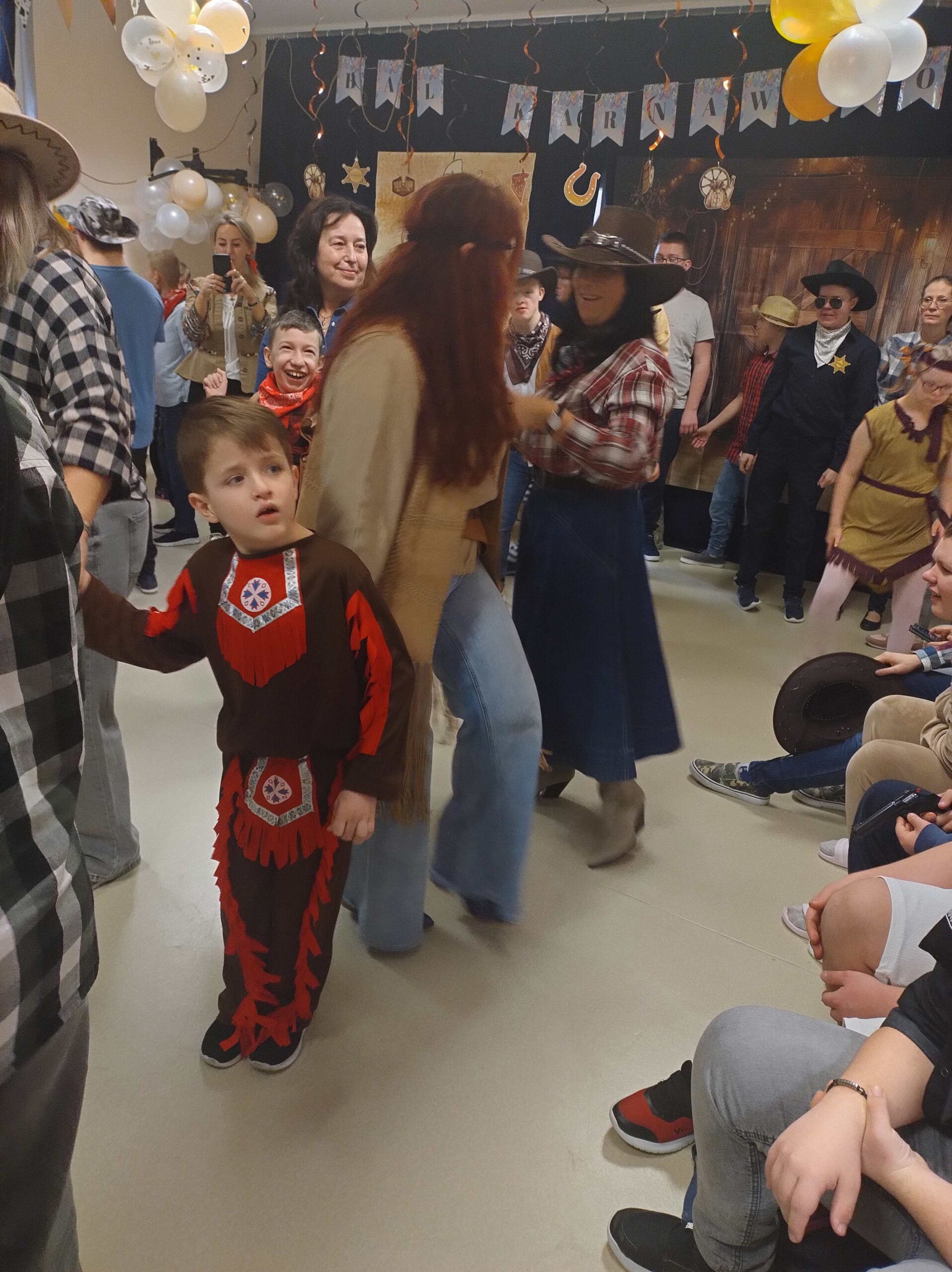 Jak najlepiej bawić się w czasie karnawału? Oczywiście w tradycyjny sposób! Musi być bal, przebieranka i ucztowanie. A, że nasza zabawa karnawałowa zbiegła się w czasie z Tłustym Czwartkiem, nie zabrakło żadnego z tych elementów. W tym roku na naszej zabawie dominowały motywy związane z Dzikim Zachodem. Mali i duzi przebrani za szeryfów, kowboi, Indian pląsali w rytm muzyki country, disco i pop. Indywidualne popisy taneczne, taniec w parach i w kółkach idealnie wpisywały się wystrój sali tanecznej. Był też czas na tradycyjnego pączka oraz oczywiście na pozowanie do zdjęć, do obejrzenia których serdecznie zapraszamy!