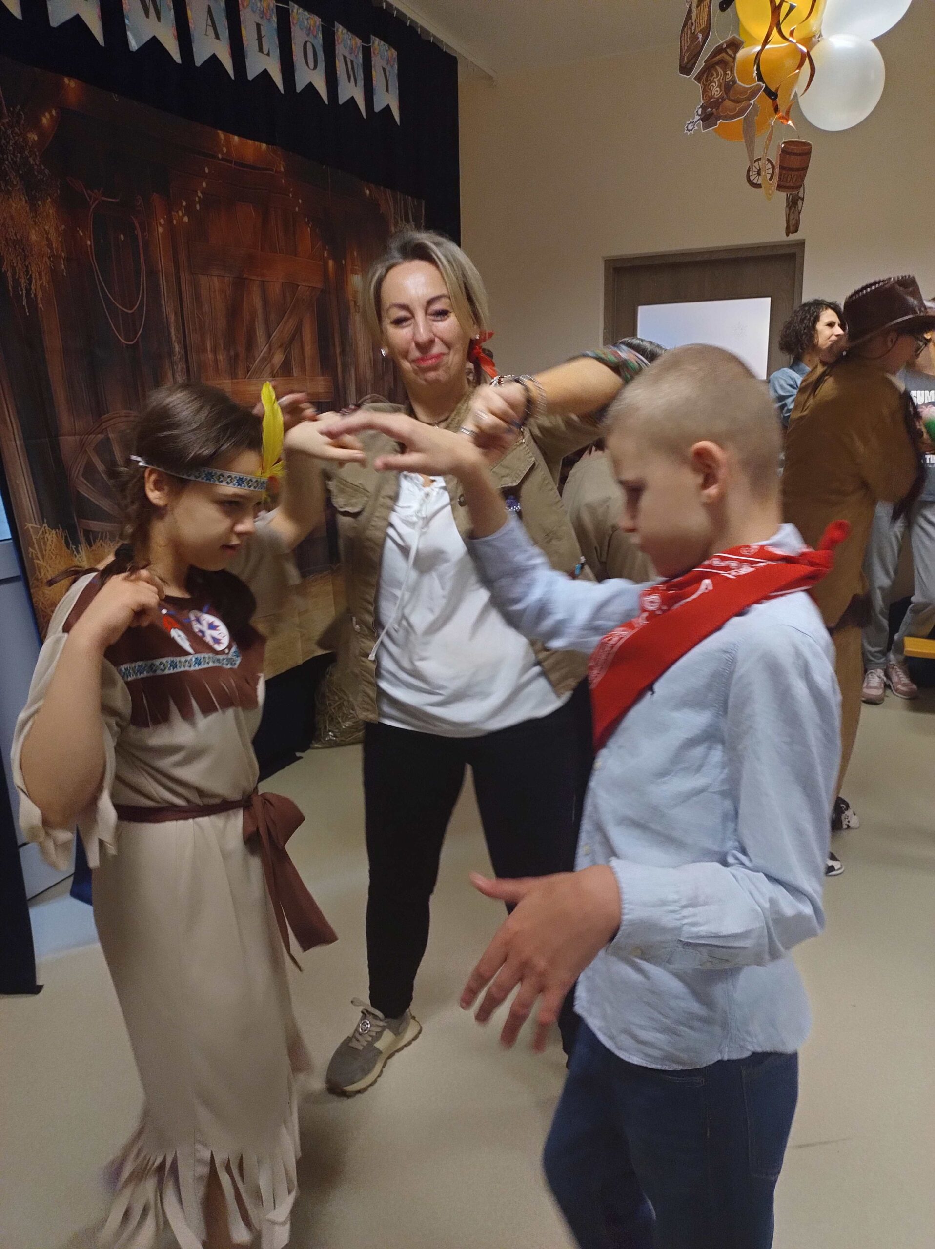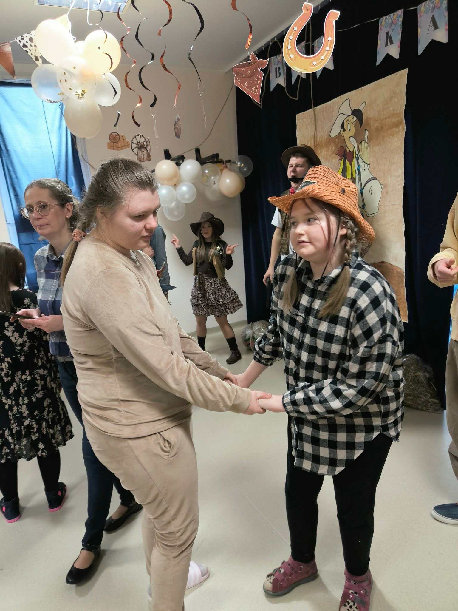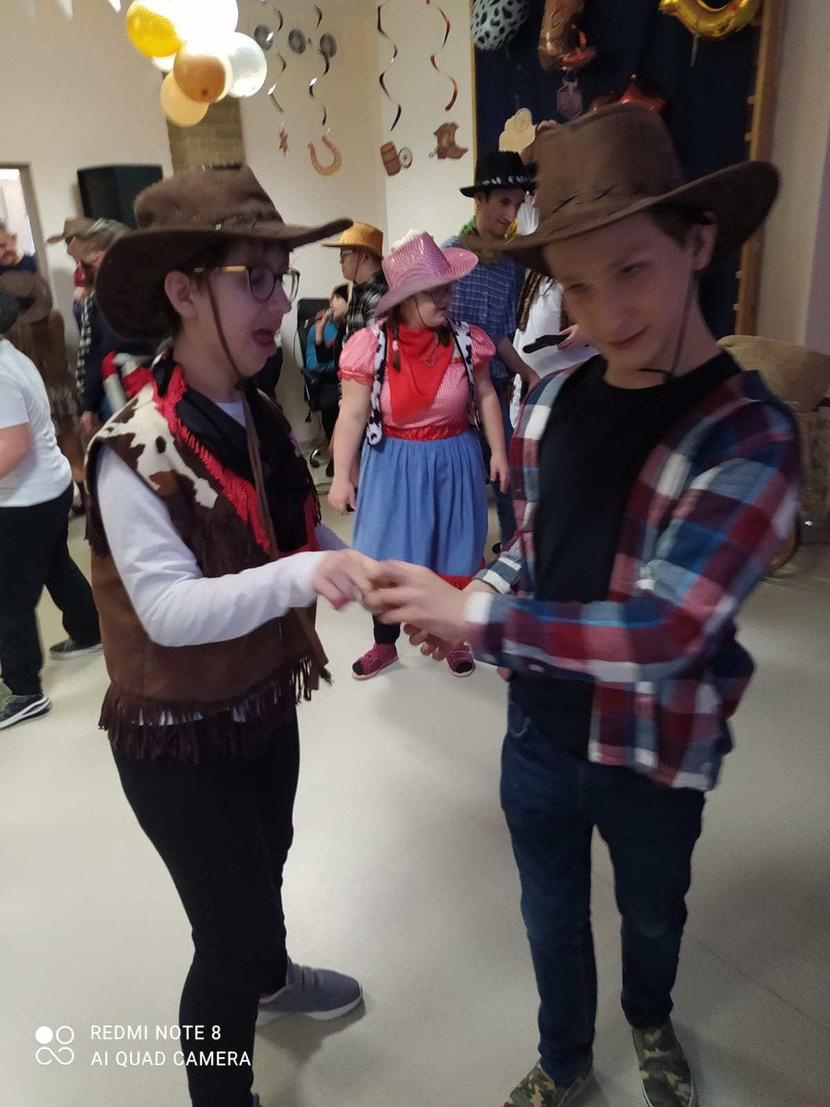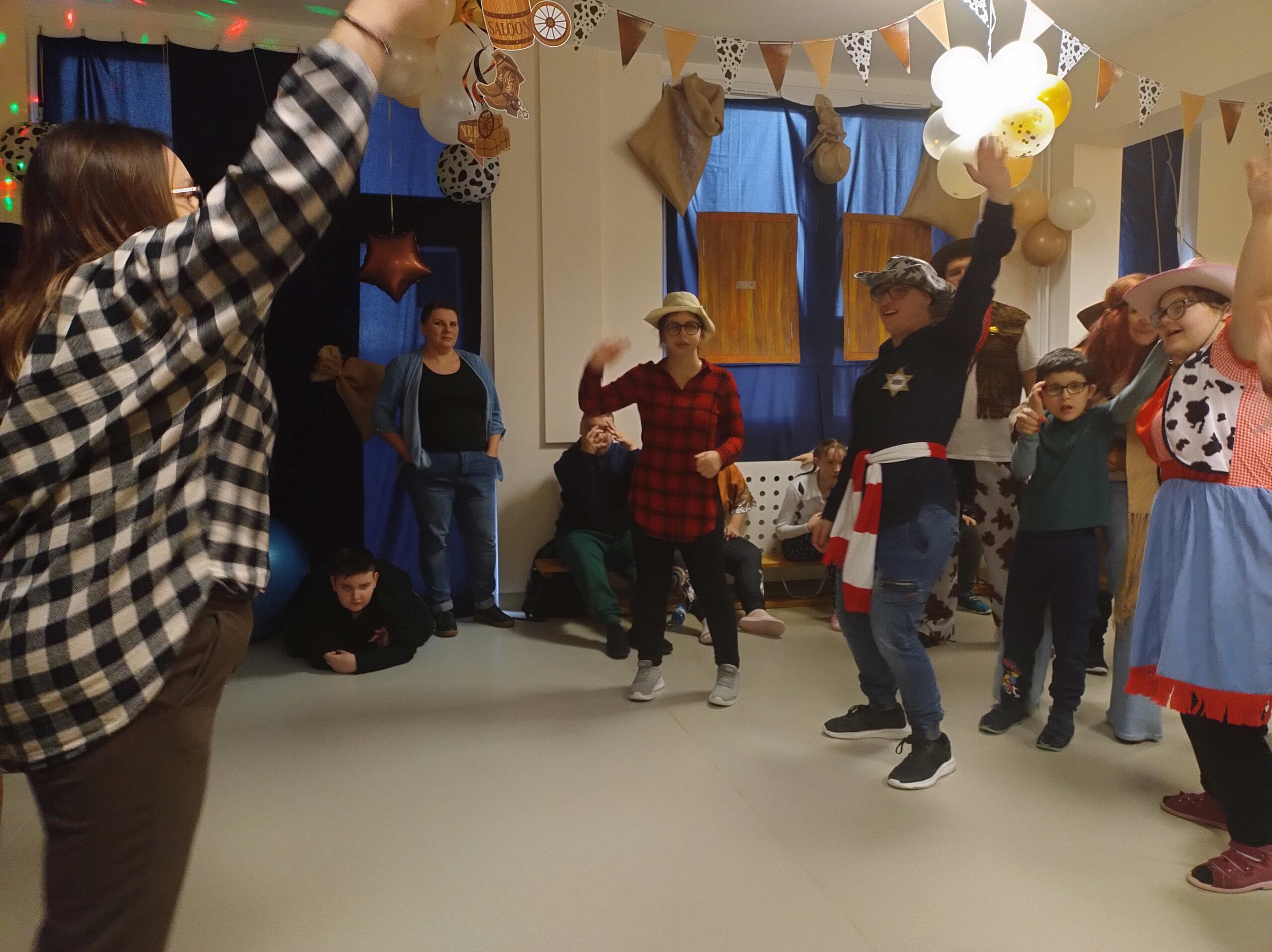 Jak najlepiej bawić się w czasie karnawału? Oczywiście w tradycyjny sposób! Musi być bal, przebieranka i ucztowanie. A, że nasza zabawa karnawałowa zbiegła się w czasie z Tłustym Czwartkiem, nie zabrakło żadnego z tych elementów. W tym roku na naszej zabawie dominowały motywy związane z Dzikim Zachodem. Mali i duzi przebrani za szeryfów, kowboi, Indian pląsali w rytm muzyki country, disco i pop. Indywidualne popisy taneczne, taniec w parach i w kółkach idealnie wpisywały się wystrój sali tanecznej. Był też czas na tradycyjnego pączka oraz oczywiście na pozowanie do zdjęć, do obejrzenia których serdecznie zapraszamy!