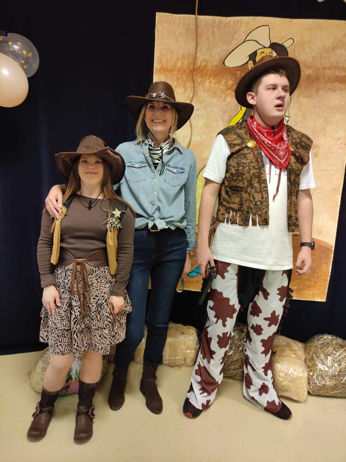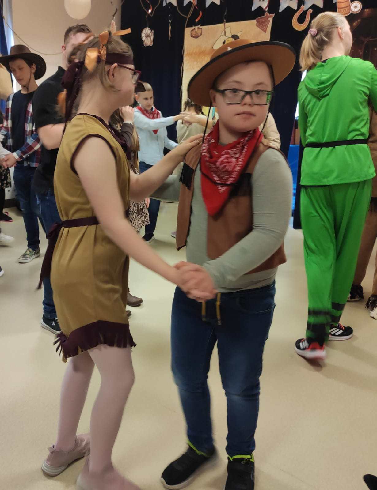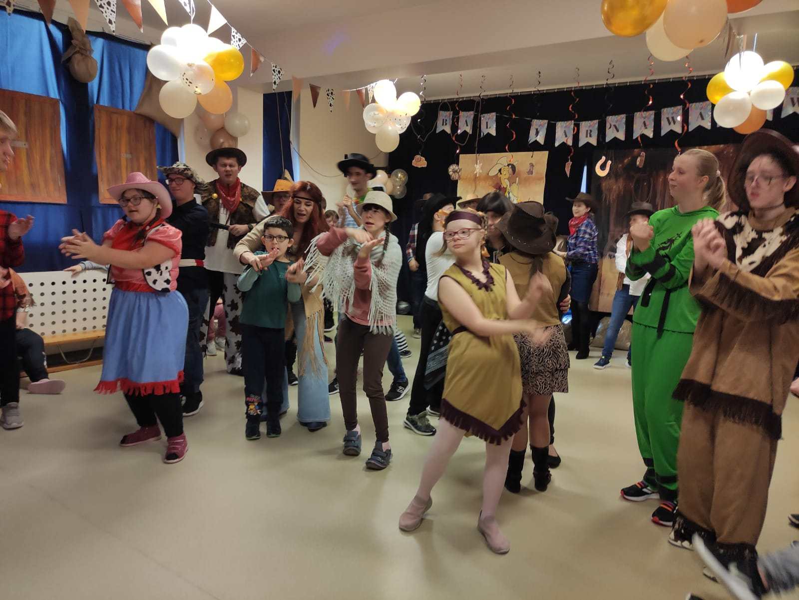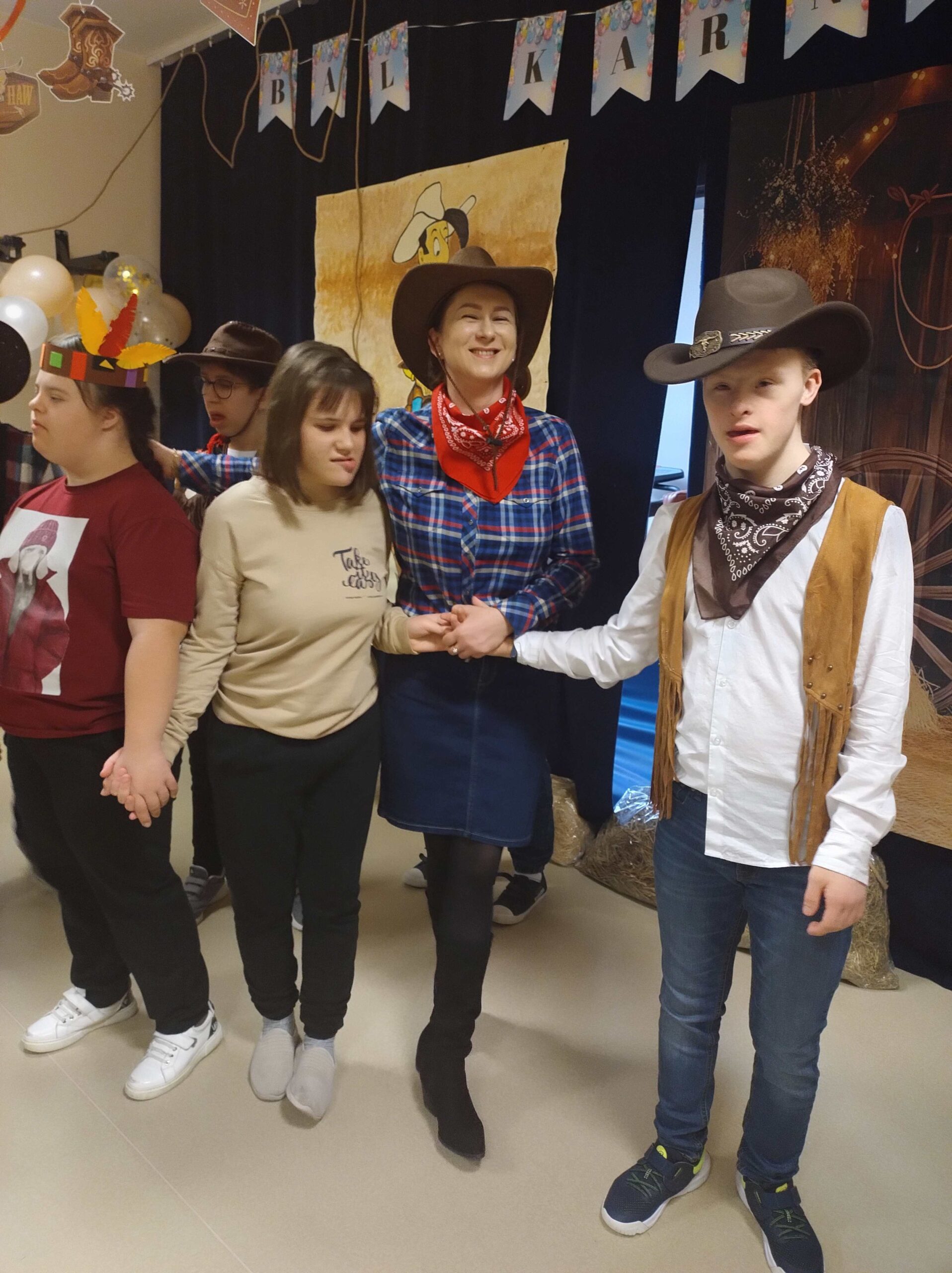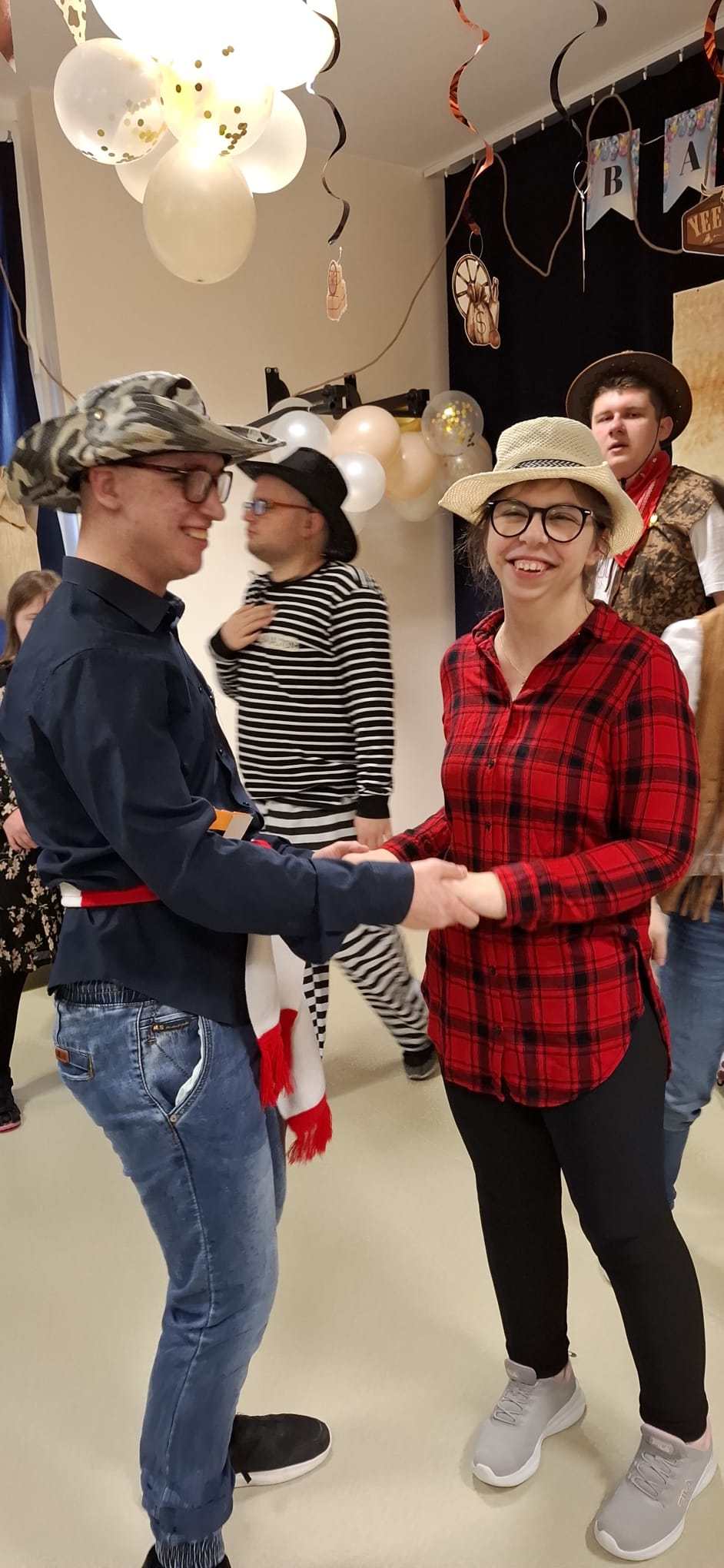 Jak najlepiej bawić się w czasie karnawału? Oczywiście w tradycyjny sposób! Musi być bal, przebieranka i ucztowanie. A, że nasza zabawa karnawałowa zbiegła się w czasie z Tłustym Czwartkiem, nie zabrakło żadnego z tych elementów. W tym roku na naszej zabawie dominowały motywy związane z Dzikim Zachodem. Mali i duzi przebrani za szeryfów, kowboi, Indian pląsali w rytm muzyki country, disco i pop. Indywidualne popisy taneczne, taniec w parach i w kółkach idealnie wpisywały się wystrój sali tanecznej. Był też czas na tradycyjnego pączka oraz oczywiście na pozowanie do zdjęć, do obejrzenia których serdecznie zapraszamy!