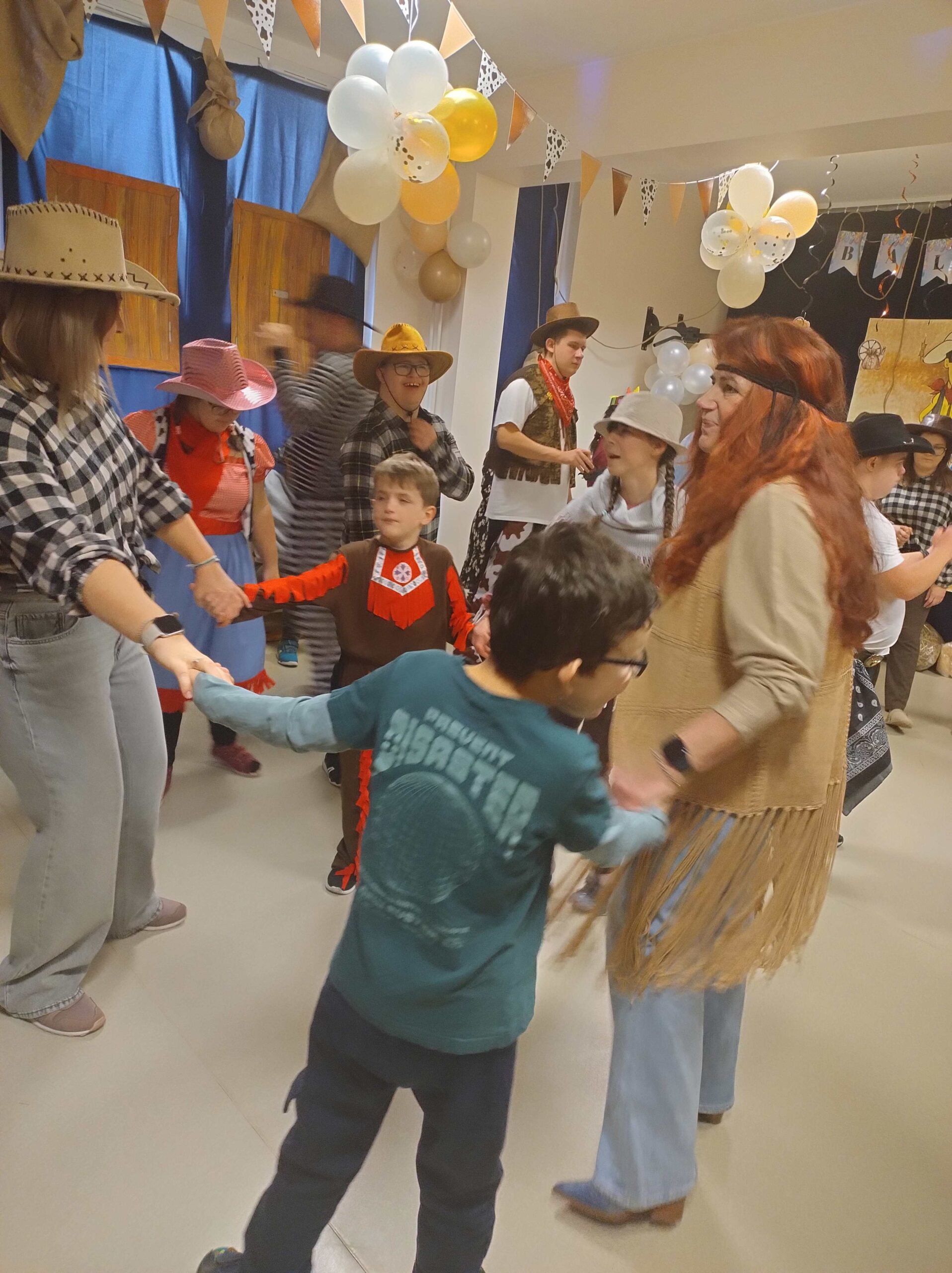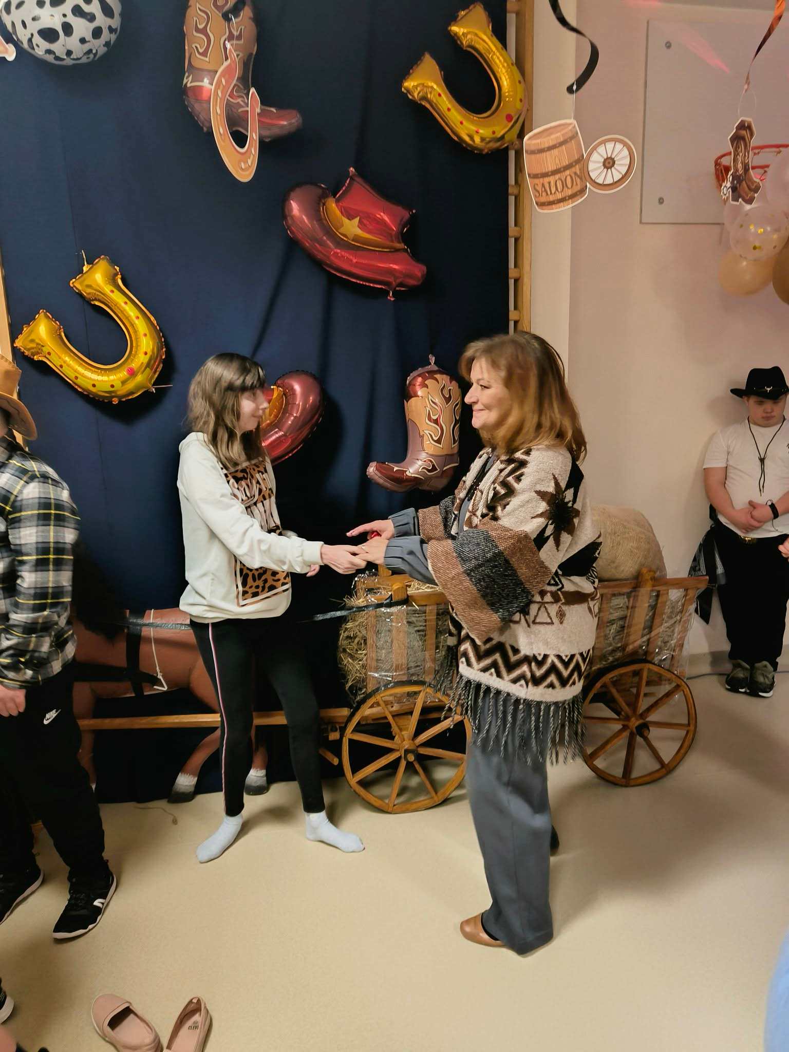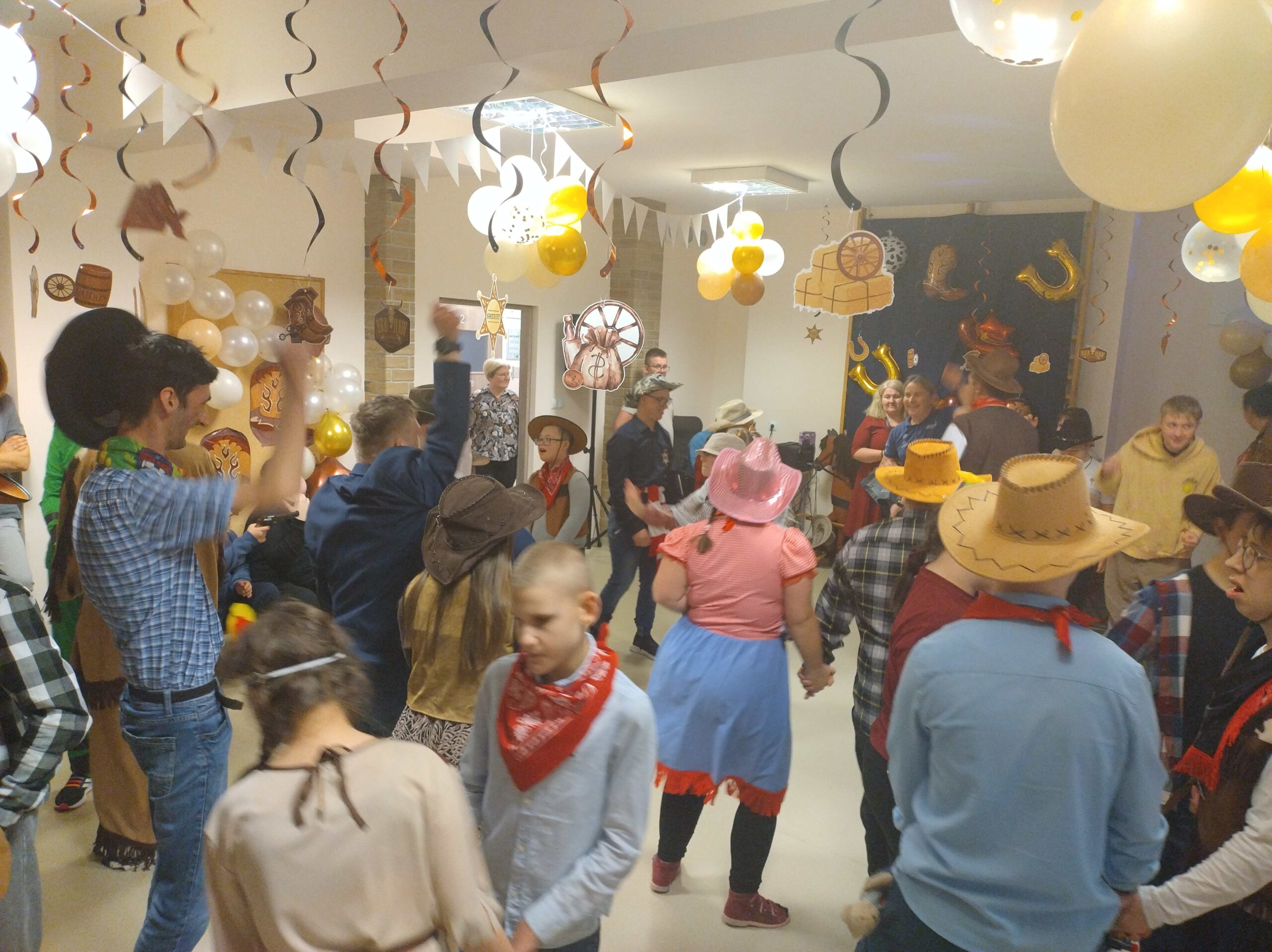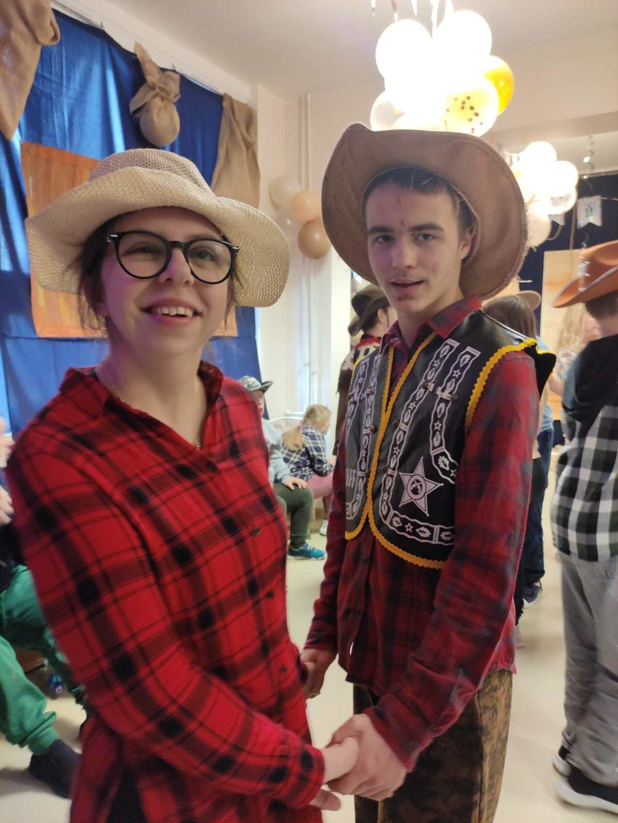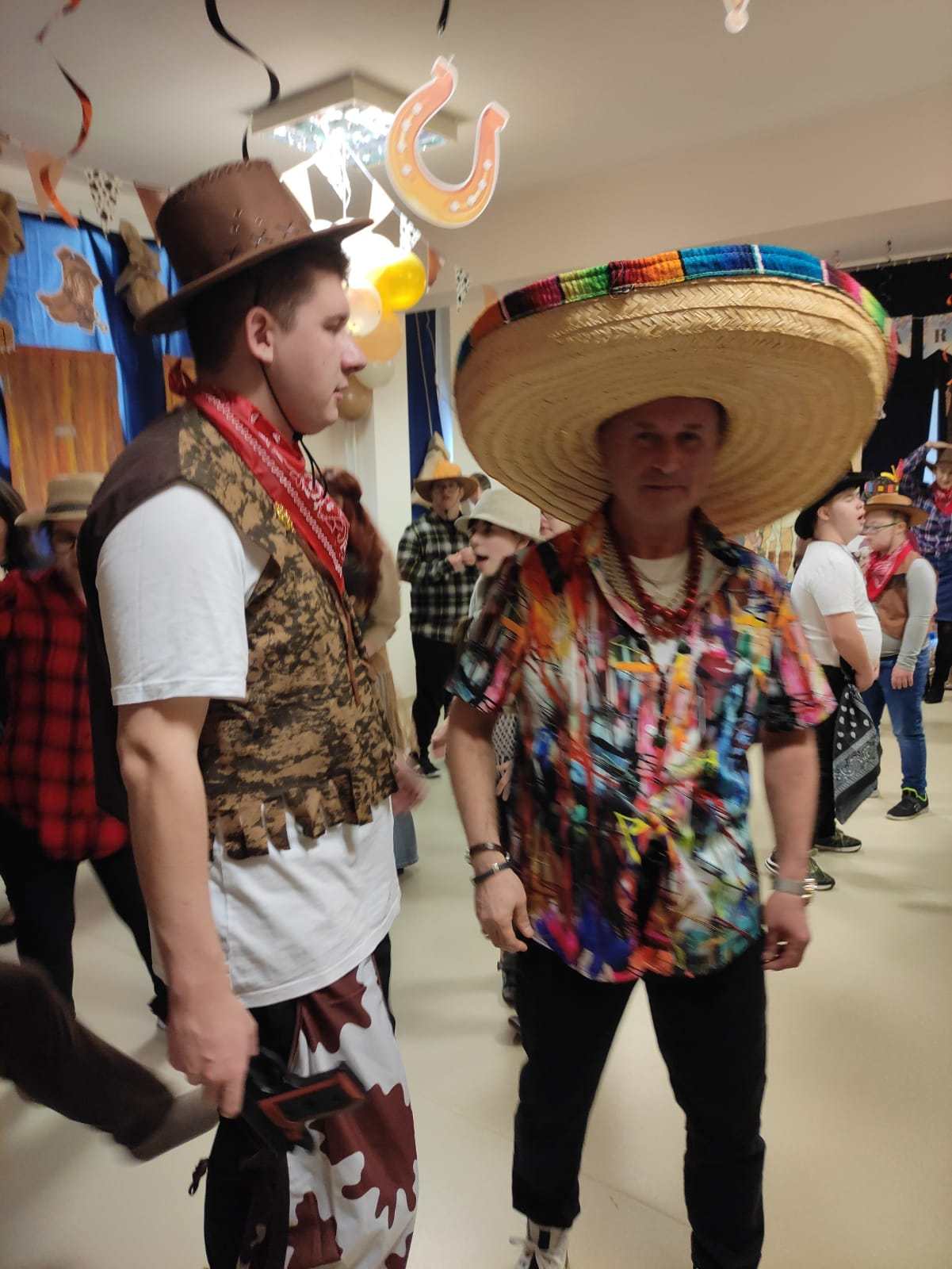 Jak najlepiej bawić się w czasie karnawału? Oczywiście w tradycyjny sposób! Musi być bal, przebieranka i ucztowanie. A, że nasza zabawa karnawałowa zbiegła się w czasie z Tłustym Czwartkiem, nie zabrakło żadnego z tych elementów. W tym roku na naszej zabawie dominowały motywy związane z Dzikim Zachodem. Mali i duzi przebrani za szeryfów, kowboi, Indian pląsali w rytm muzyki country, disco i pop. Indywidualne popisy taneczne, taniec w parach i w kółkach idealnie wpisywały się wystrój sali tanecznej. Był też czas na tradycyjnego pączka oraz oczywiście na pozowanie do zdjęć, do obejrzenia których serdecznie zapraszamy!