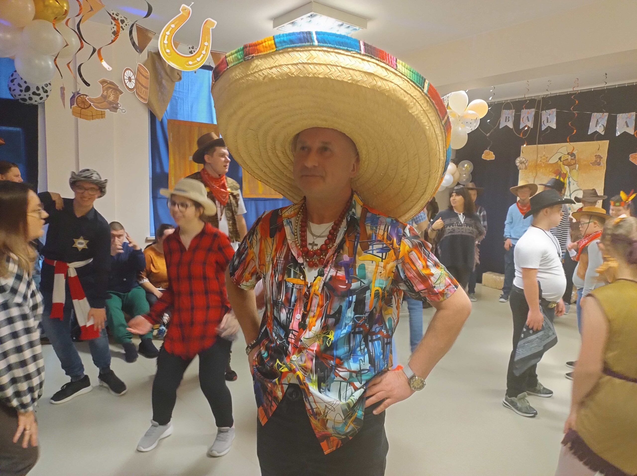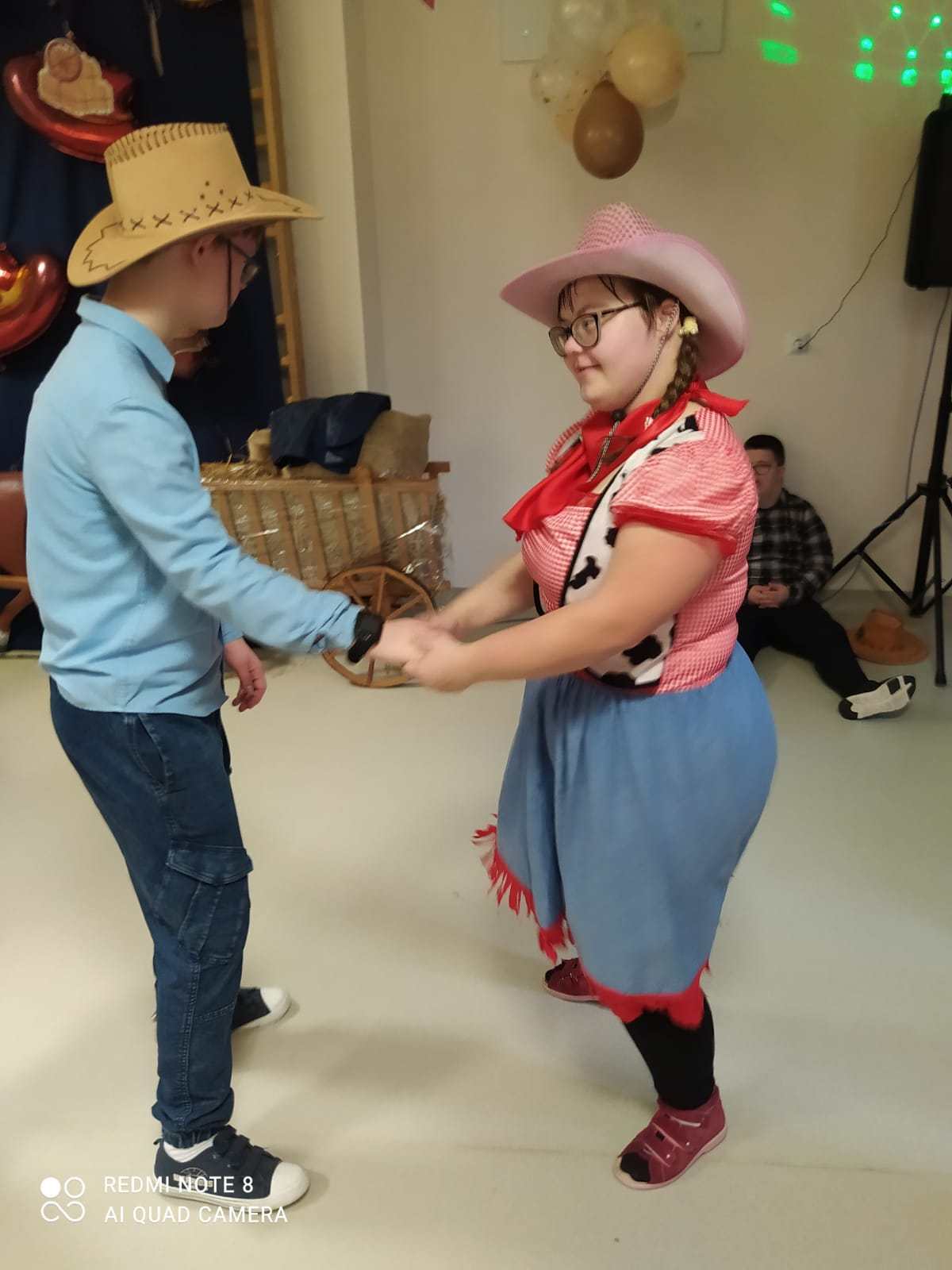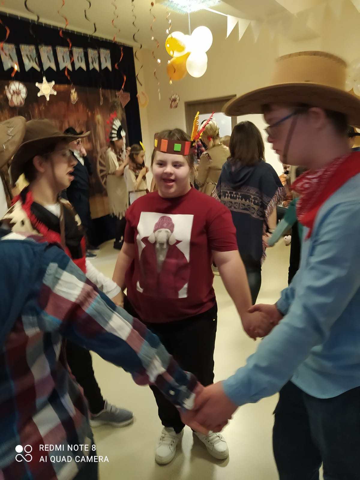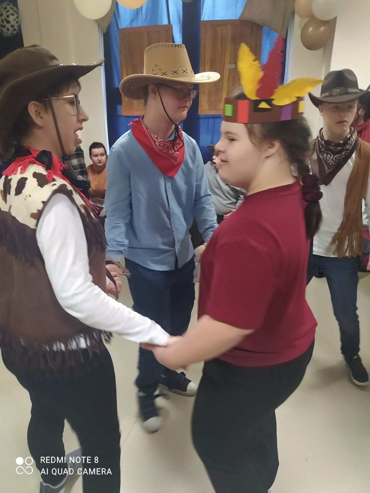 Jak najlepiej bawić się w czasie karnawału? Oczywiście w tradycyjny sposób! Musi być bal, przebieranka i ucztowanie. A, że nasza zabawa karnawałowa zbiegła się w czasie z Tłustym Czwartkiem, nie zabrakło żadnego z tych elementów. W tym roku na naszej zabawie dominowały motywy związane z Dzikim Zachodem. Mali i duzi przebrani za szeryfów, kowboi, Indian pląsali w rytm muzyki country, disco i pop. Indywidualne popisy taneczne, taniec w parach i w kółkach idealnie wpisywały się wystrój sali tanecznej. Był też czas na tradycyjnego pączka oraz oczywiście na pozowanie do zdjęć, do obejrzenia których serdecznie zapraszamy!