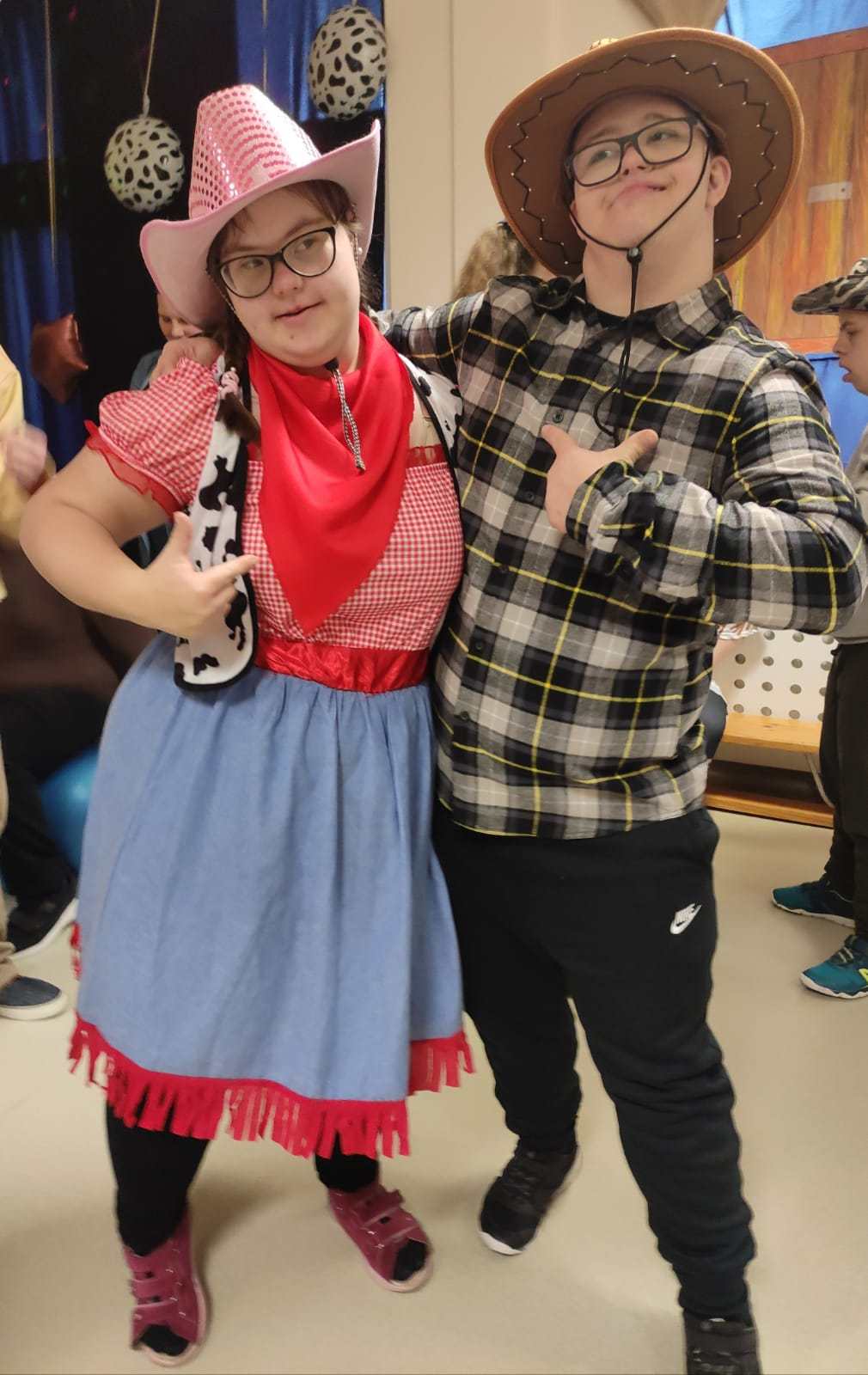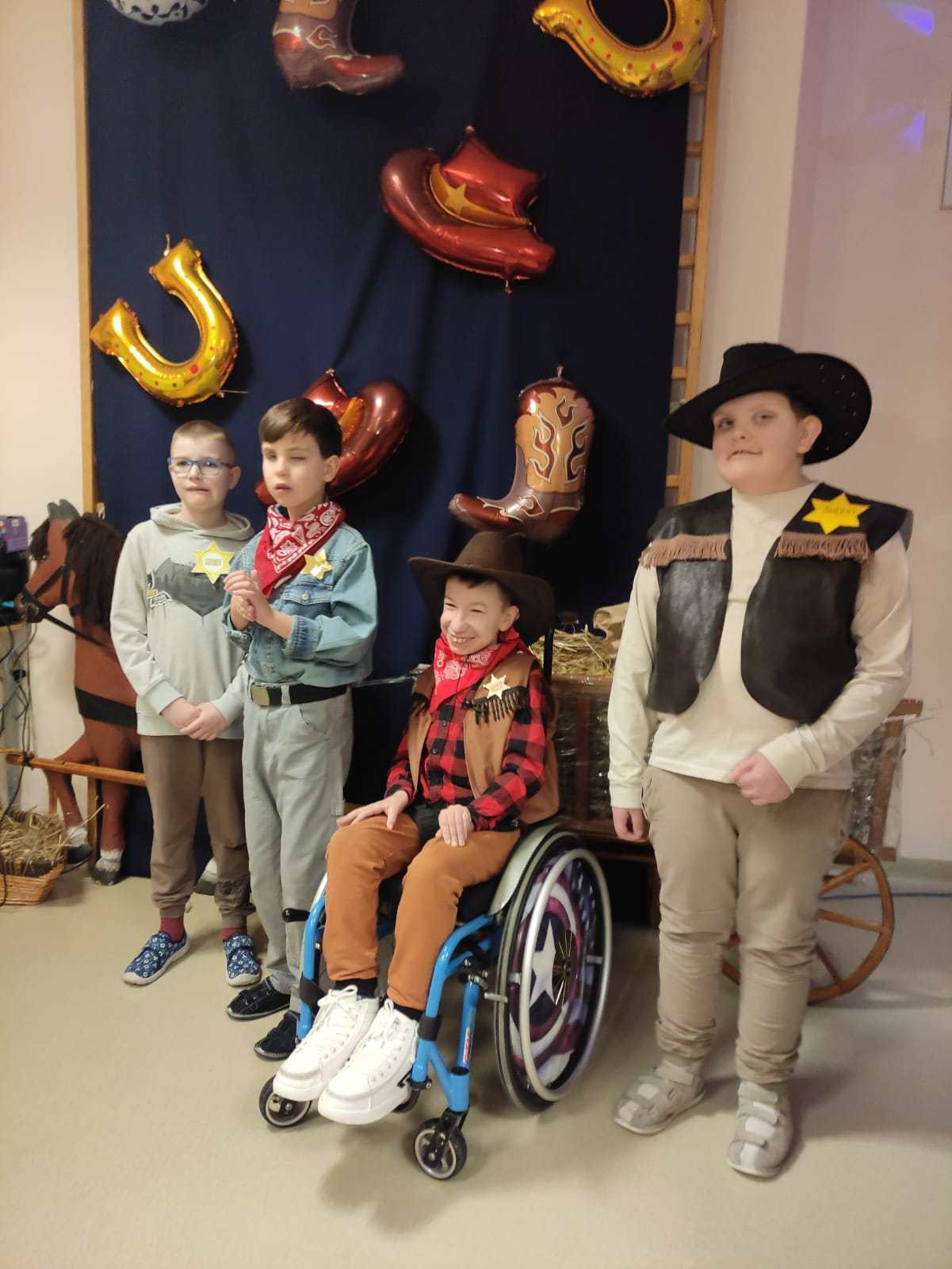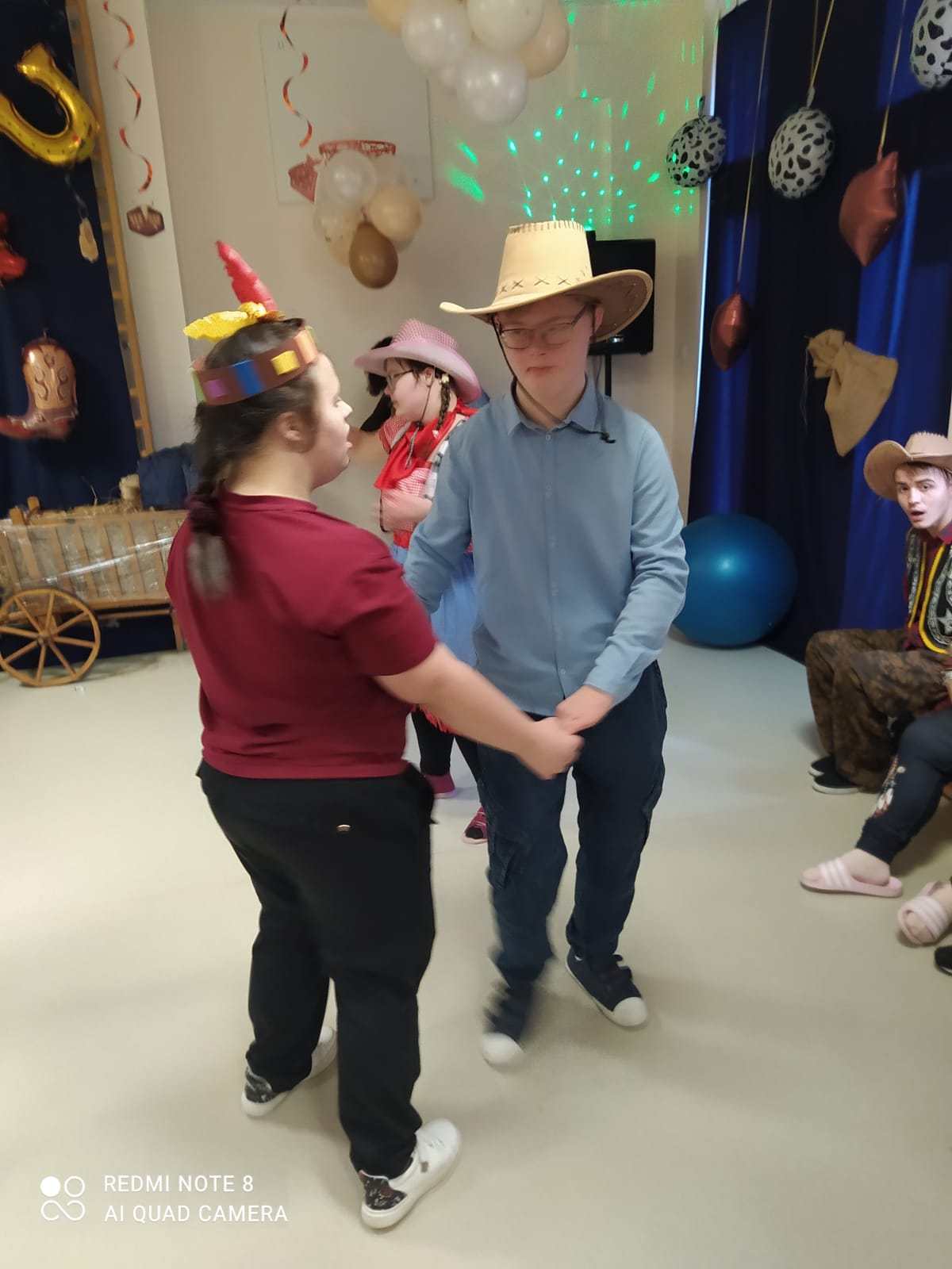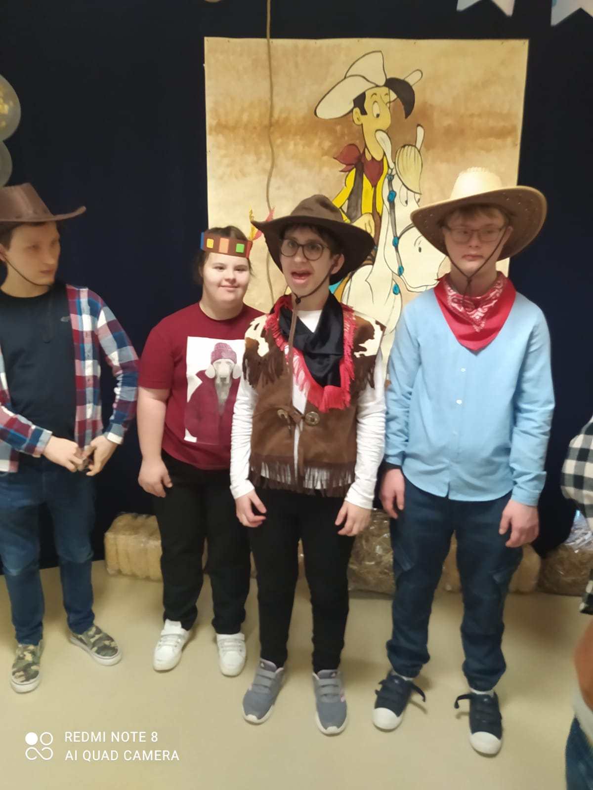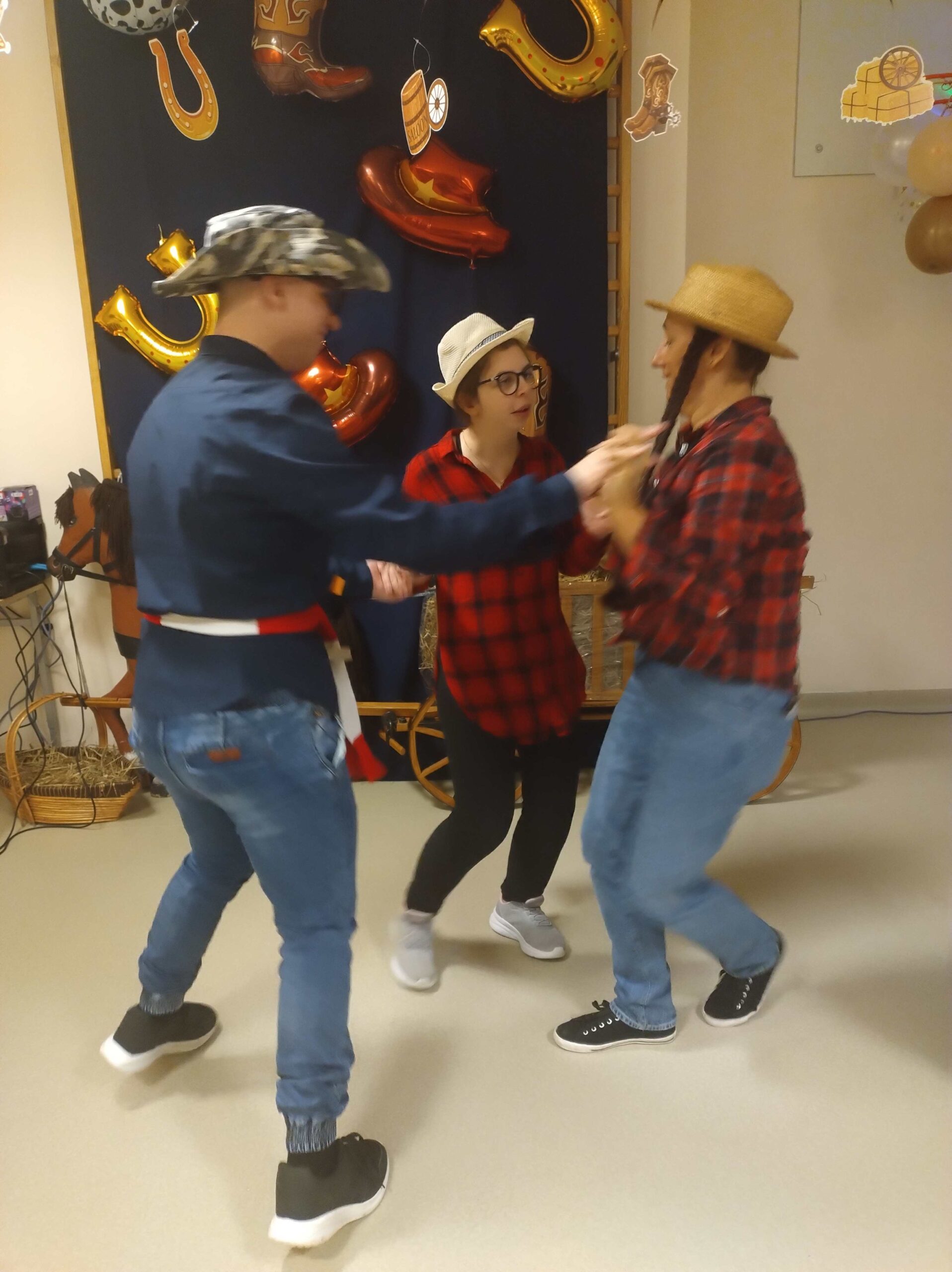 Jak najlepiej bawić się w czasie karnawału? Oczywiście w tradycyjny sposób! Musi być bal, przebieranka i ucztowanie. A, że nasza zabawa karnawałowa zbiegła się w czasie z Tłustym Czwartkiem, nie zabrakło żadnego z tych elementów. W tym roku na naszej zabawie dominowały motywy związane z Dzikim Zachodem. Mali i duzi przebrani za szeryfów, kowboi, Indian pląsali w rytm muzyki country, disco i pop. Indywidualne popisy taneczne, taniec w parach i w kółkach idealnie wpisywały się wystrój sali tanecznej. Był też czas na tradycyjnego pączka oraz oczywiście na pozowanie do zdjęć, do obejrzenia których serdecznie zapraszamy!