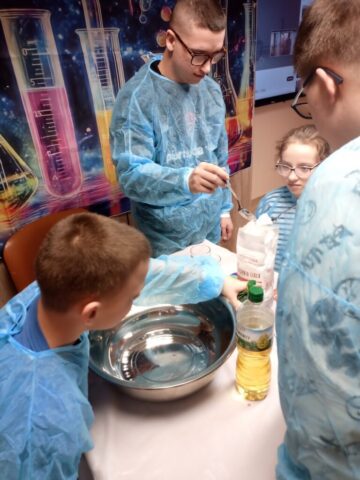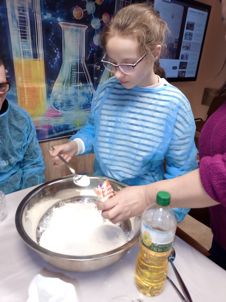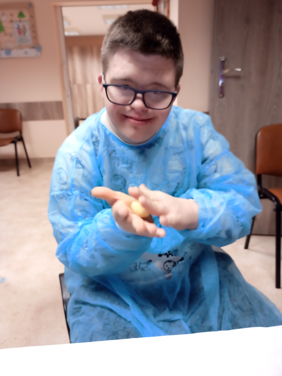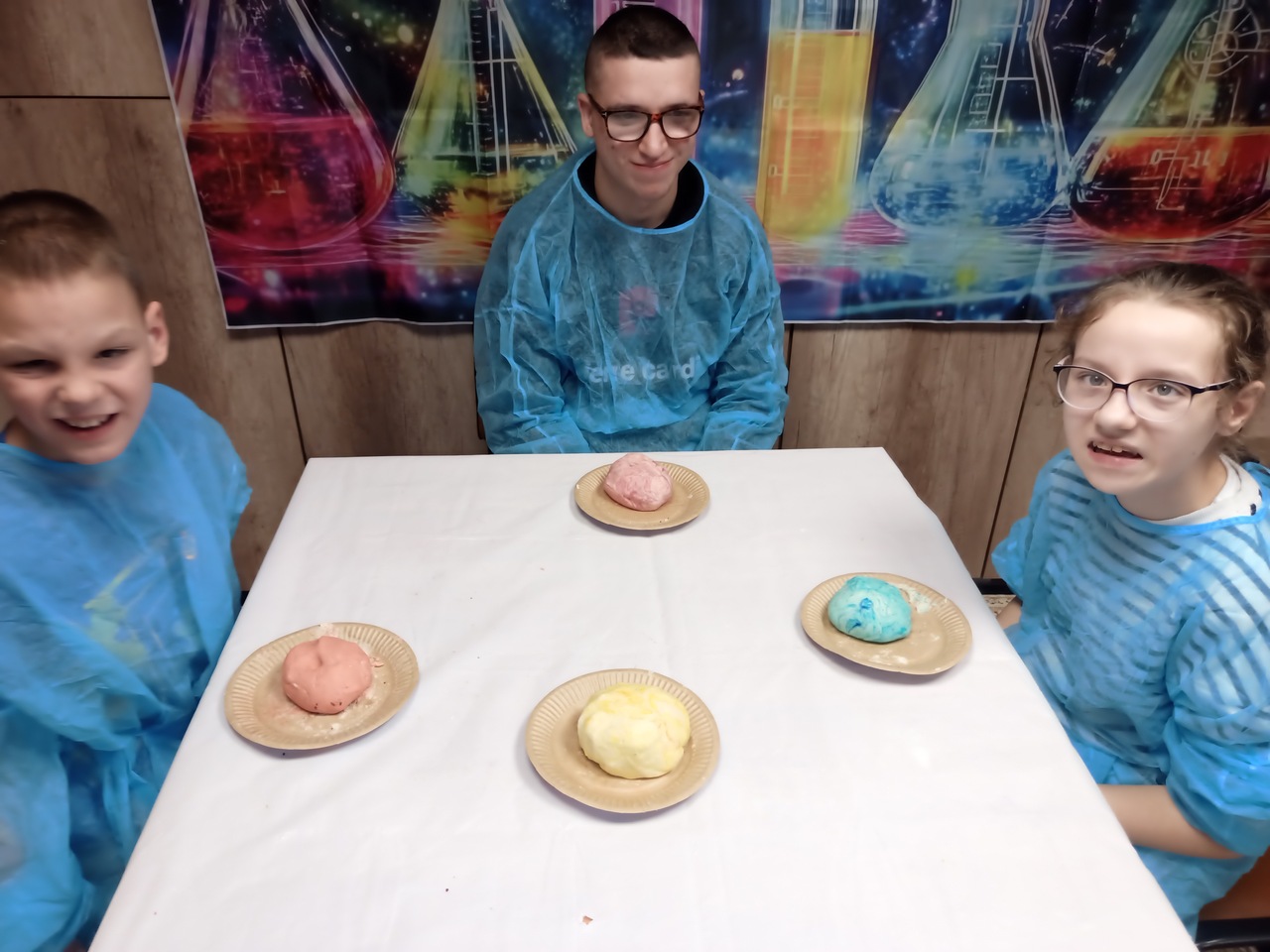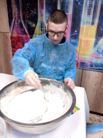 Zabawy z ciastoliną własnej produkcji. Po feriach powrócićliśmy do naszych eksperymentów sensorycznych, tym razem wychowankowie grup wychowawczych wyonali domową ciastolinę. Proces powstawania tej masy plastycznej budził wśród wychowanków duże zainteresowanie. Każdy chętny otrzymał swoje zadanie do wykonania i cierpliwie czekał na swoją kolej. Odmierzaliśmy właściwe proporcje, mieszaliśmy składniki i ugniataliśmy wszystko na jedną, gładką masę. Potem było już tylko twórczo. Podczas zabawy wychowankowie rozwijali swoją kreatywność, motorykę i zdolności manualne.