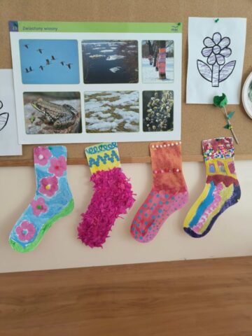 DZIEŃ KOLOROWEJ SKARPETKI W ÓSMEJ KLASIE 27 marca 2026 Przygotowania do świętowania Dnia Kolorowej Skarpetki w klasie 8 trwały cały piątek Dziewczynki z dużym zaangażowaniem kolorowały, malowały i ozdabiały przygotowane skarpetki. Piękne efekty naszej pracy widać na zdjęciach. Opracowanie Katarzyna Pieczara