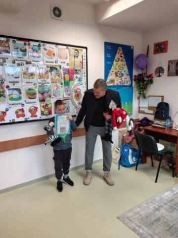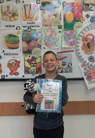 Izabela, Julia, Małgorzata i Tobiasz wzięli również udział w konkursie pt. ,,Lawendowy Plakat Dobroci”. Wspólnie wykonana praca zajęła pierwsze miejsce. Uczestnicy otrzymali dyplom oraz nagrody rzeczowe. Serdecznie gratulujemy naszym uczniom oraz życzymy dalszych sukcesów.