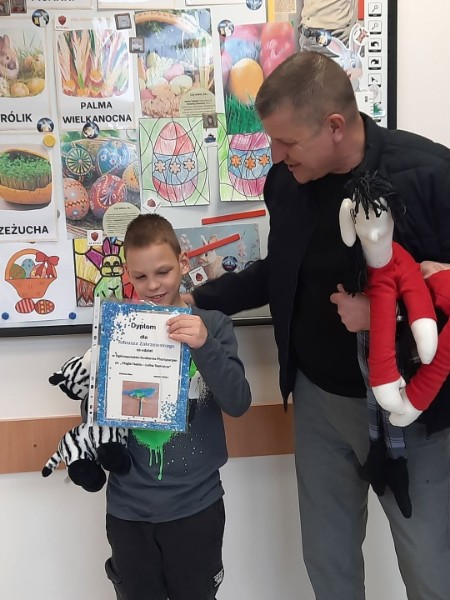 Troje uczniów z kl. IV wzięło udział w Ogólnopolskim Konkursie Plastycznym pt. ,,Magia Teatru – Lalka Teatralna”. Kukiełki Izabeli Foks oraz Julii Brzyśkiewicz zakwalifikowały się do wystawy. Uczniowie otrzymali dyplomy i nagrody rzeczowe.