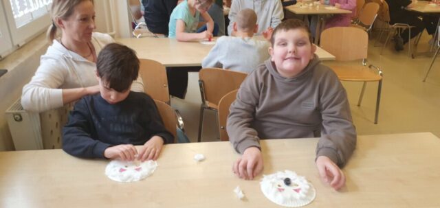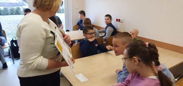 W ramach współpracy z Wojewódzką Biblioteką Publiczną w Kielcach uczniowie szkoły podstawowej spotkali się na kolejnych już w tym roku szkolnym warsztatach bibliotecznych, prowadzonych przez panią Małgosię Kędziorską. Dzisiejsze spotkanie zatytułowane było: „Koci świat.” Pani bibliotekarka czytała nam ciekawe książki o kotach, poznaliśmy różne rasy kotów oraz ciekawostki z ich życia, dowiedzieliśmy się jak prawidłowo opiekować się kotami w domu. Mogliśmy też własnoręcznie wykonać kocie portrety na papierowych talerzykach. A to krótka fotorelacja z tego spotkania.