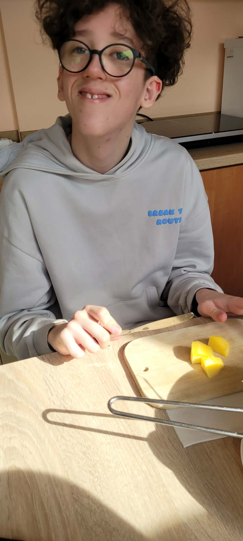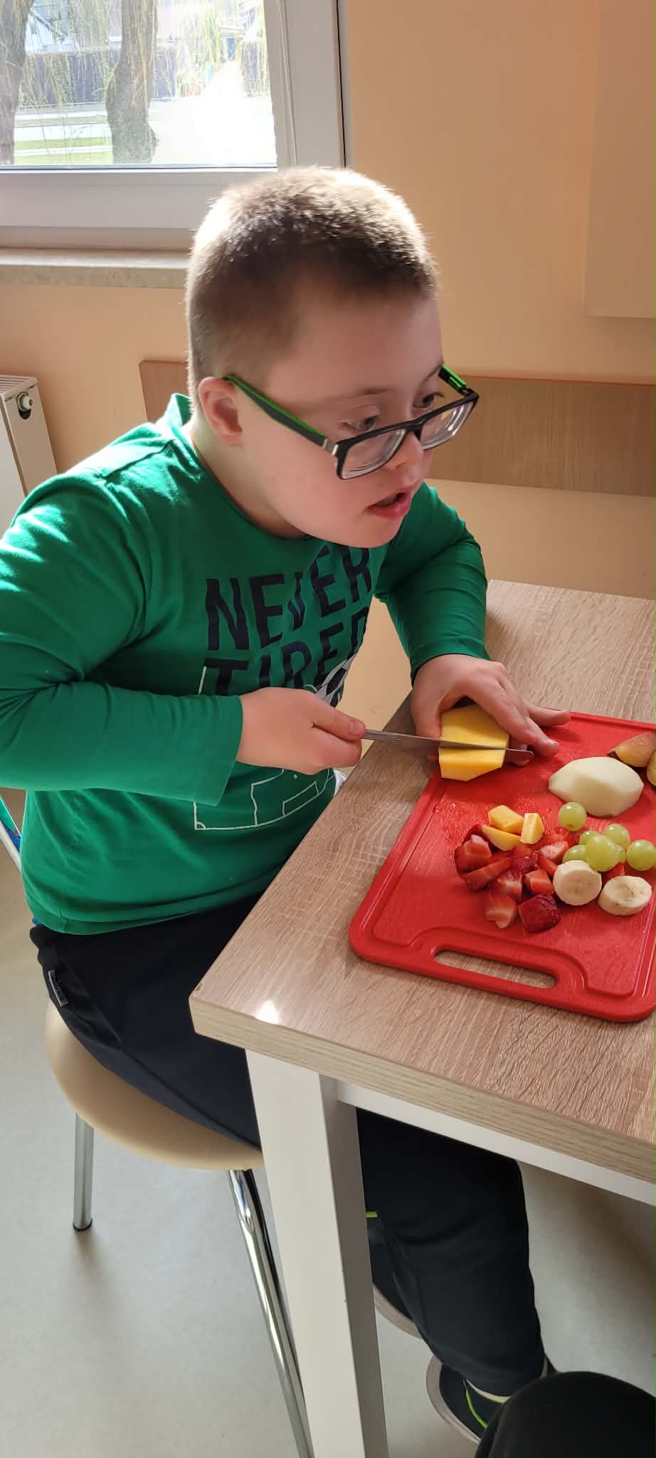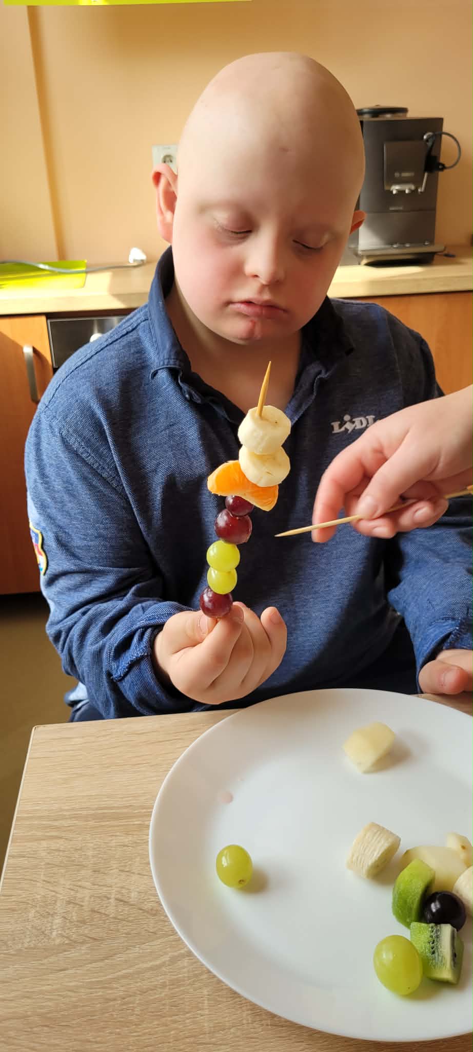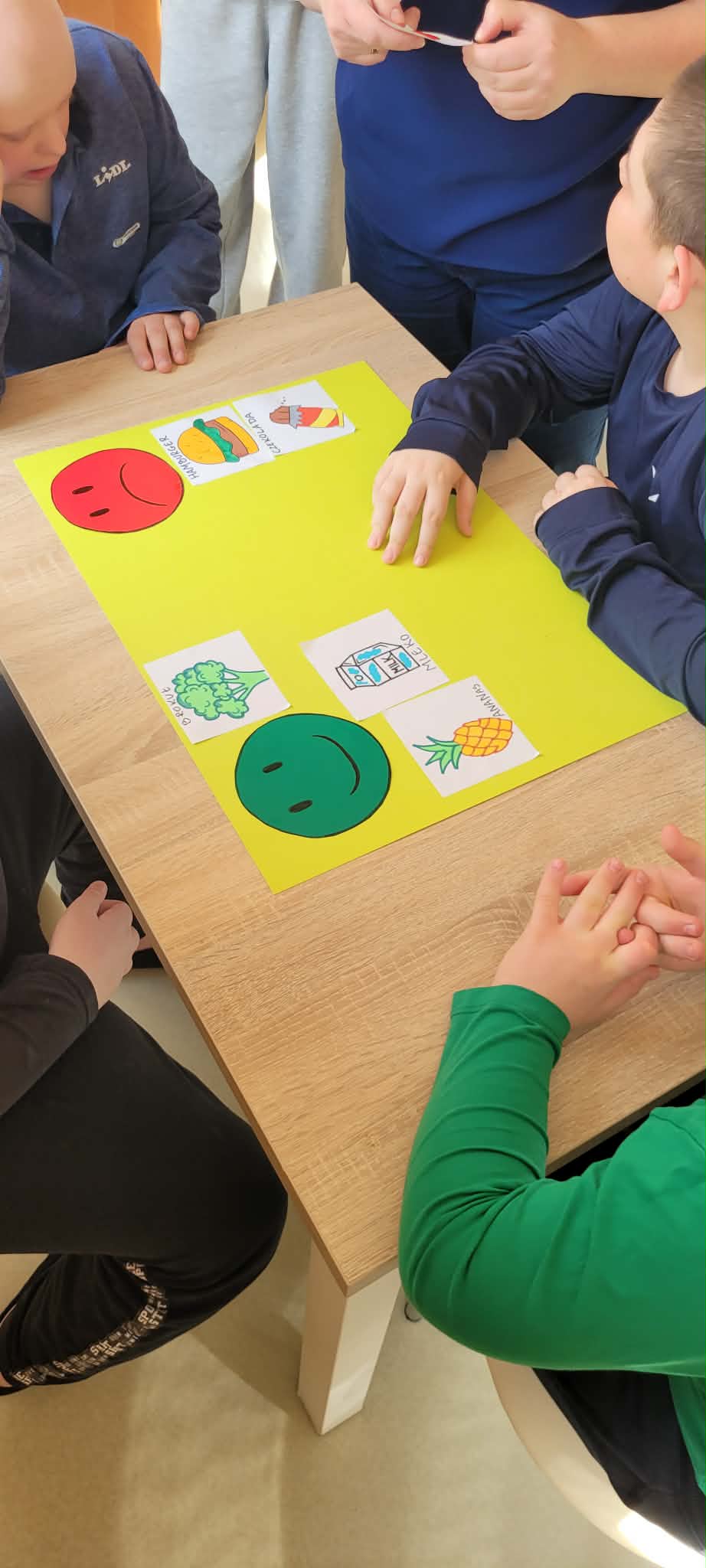 Uczniowie klas 1,2,3,7, i 8 poznali zasady higienicznego przygotowania owoców: dokładne mycie, obieranie i krojenie. Następnie każdy mógł samodzielnie skomponować własny, kolorowy szaszłyk, łącząc ulubione smaki i tworząc ciekawe wzory. Podczas zajęć rozmawialiśmy także o wartości odżywczej owoców, a także segregowaliśmy produkty na zdrowe i niezdrowe.